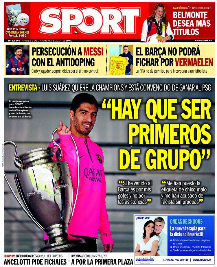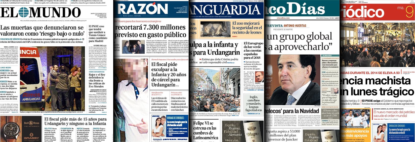 Portadas de los diarios El Mundo, El País, ABC, La Razón, La Vanguardia, El Periódico, Cinco Días, El Economista, Expansión, Marca, As, Mundo Deportivo y Sport.