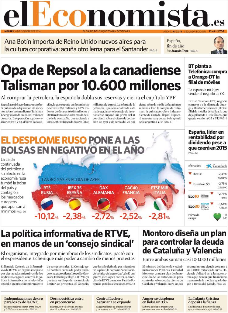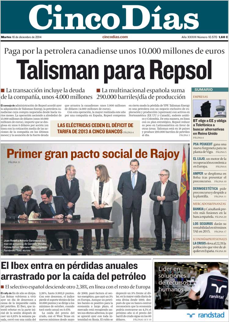 "Opa de Repsol a la canadiense Talisman por 10.600 millones"