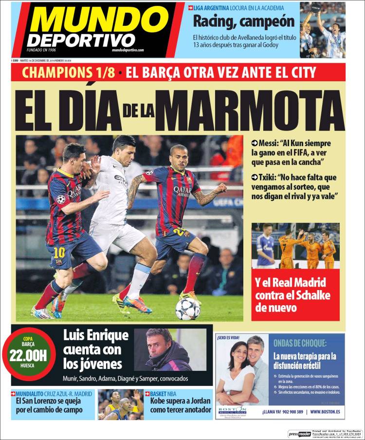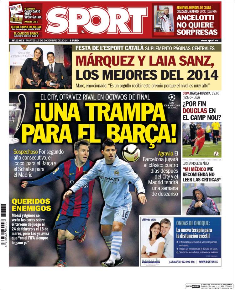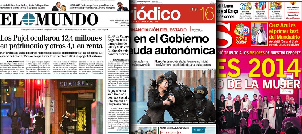 Portadas de los diarios El Mundo, El País, ABC, La Razón, La Vanguardia, El Periódico, Cinco Días, El Economista, Expansión, As, Mundo Deportivo y Sport.Portadas de los diarios ABC, As, El Periódico y La Vanguardia.