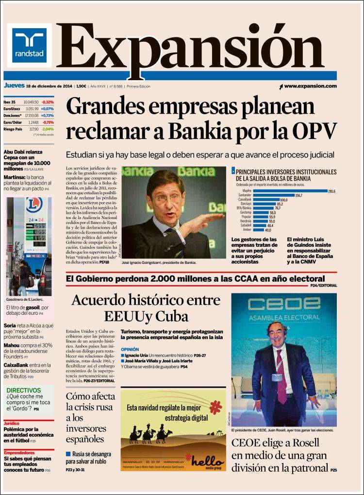 "Grandes empresas planean reclamar a Bankia por la OPV"