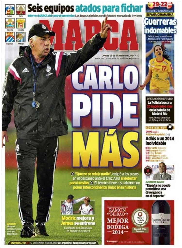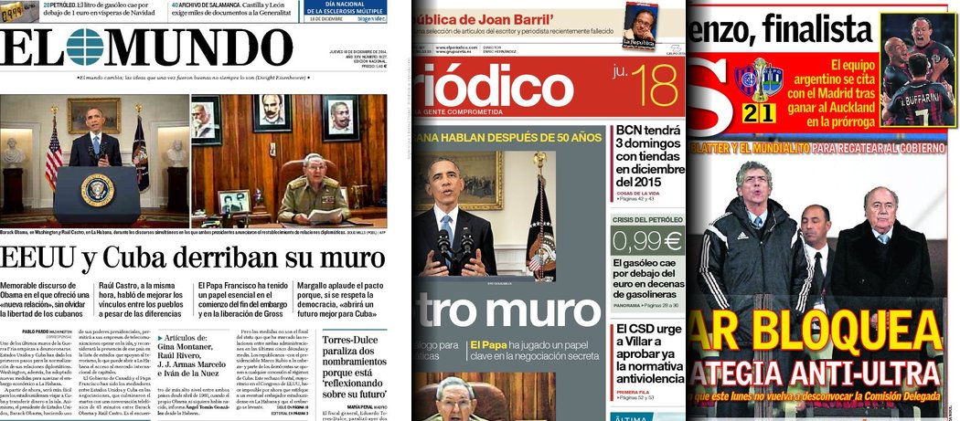 Portadas de los diarios El Mundo, El País, ABC, La Razón, La Vanguardia, El Periódico, Cinco Días, Expansión, Marca, As, Mundo Deportivo y Sport.