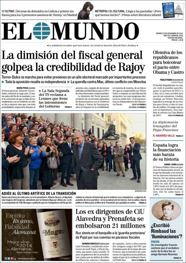 "La dimisión del fiscal general golpea la credibilidad de Rajoy"