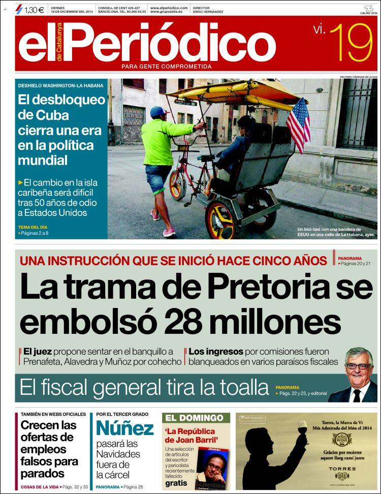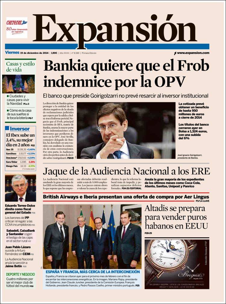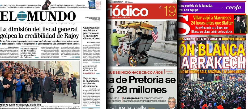 Portadas de los diarios El Mundo, El País, ABC, La Razón, La Vanguardia, El Periódico, Cinco Días, El Economista, Expansión, Marca, As, Mundo Deportivo y Sport.