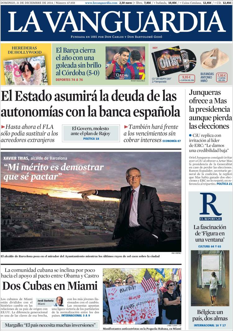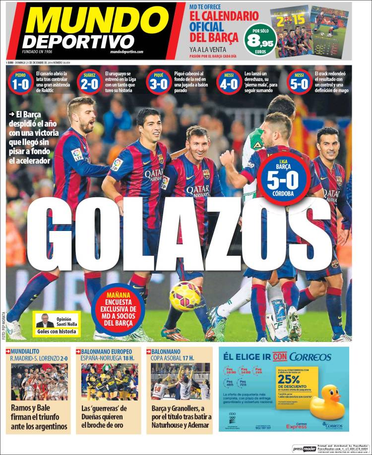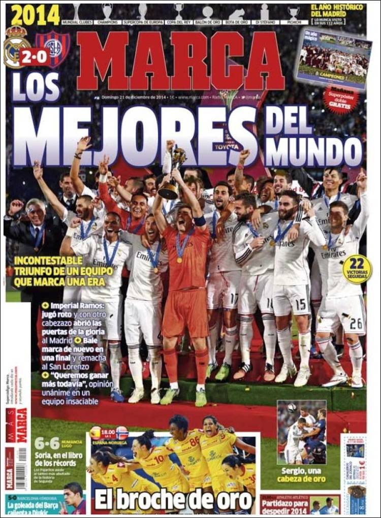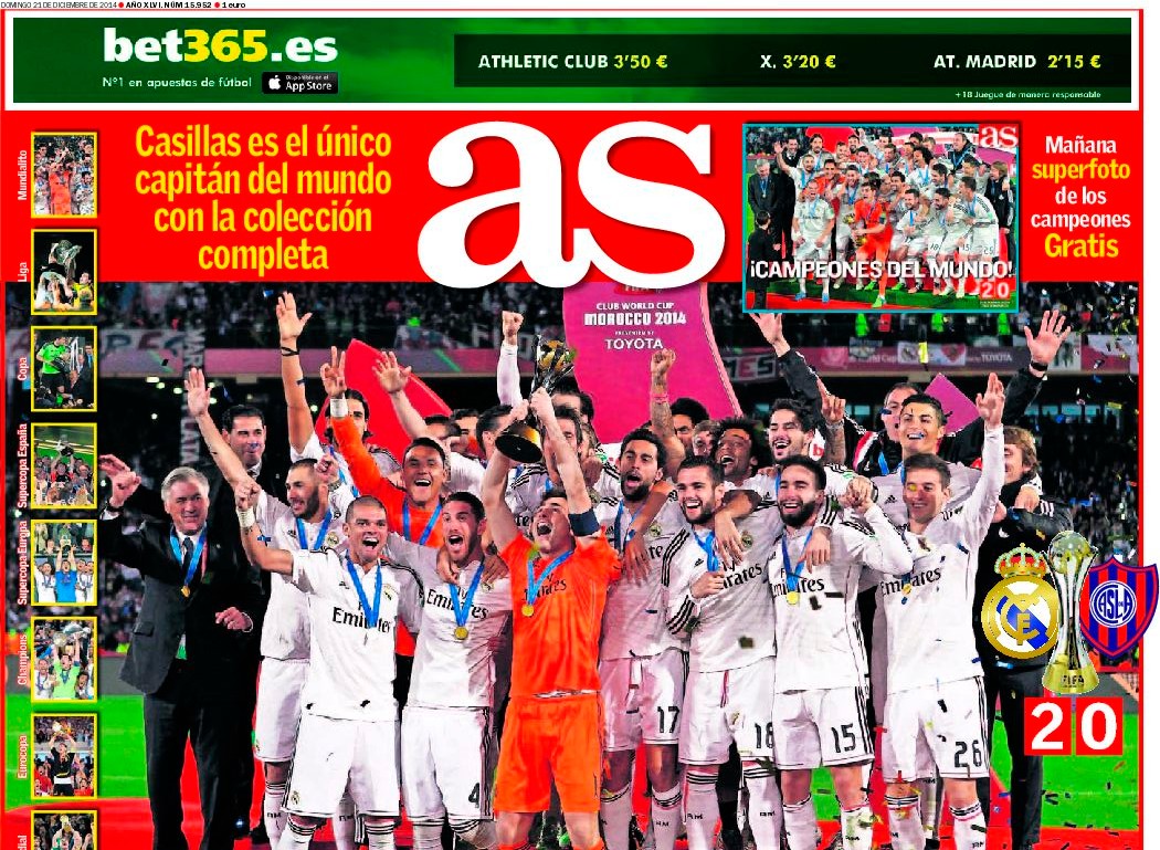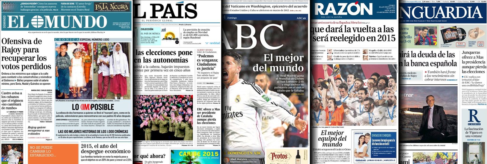 Portadas de los diarios ABC, La Razón, As, El Periódico y La Vanguardia.