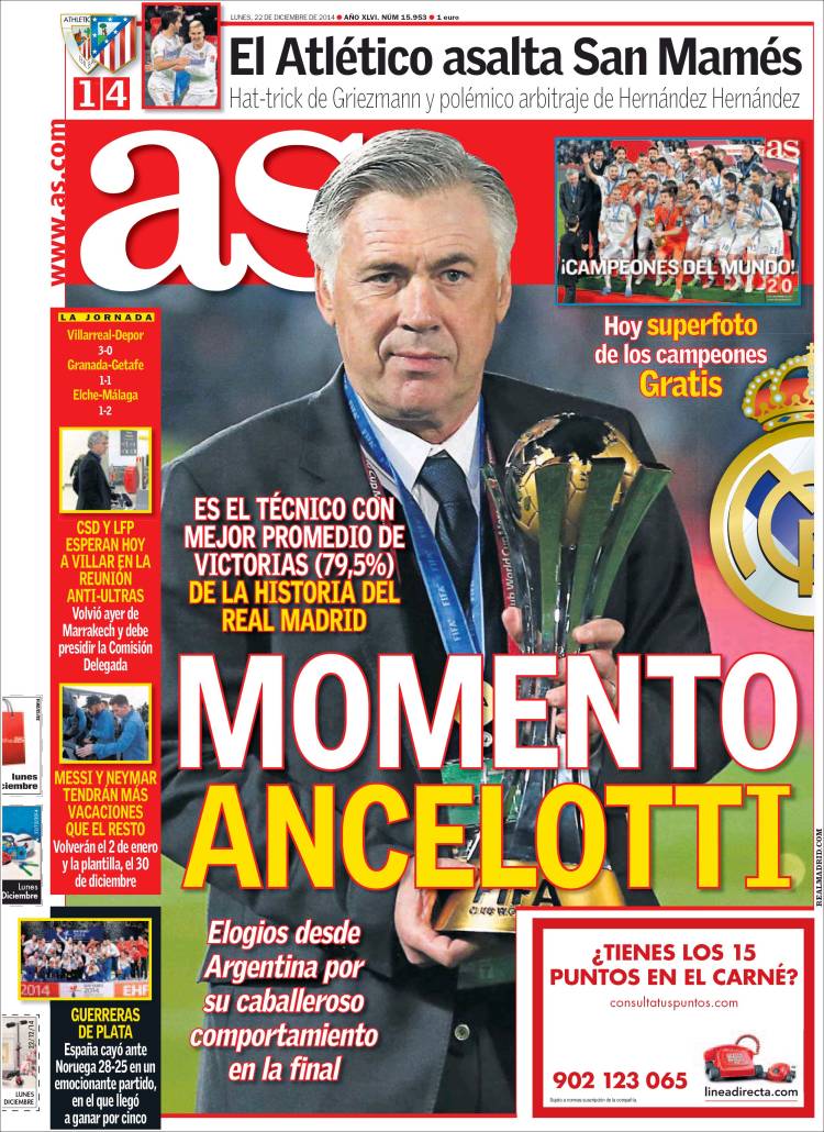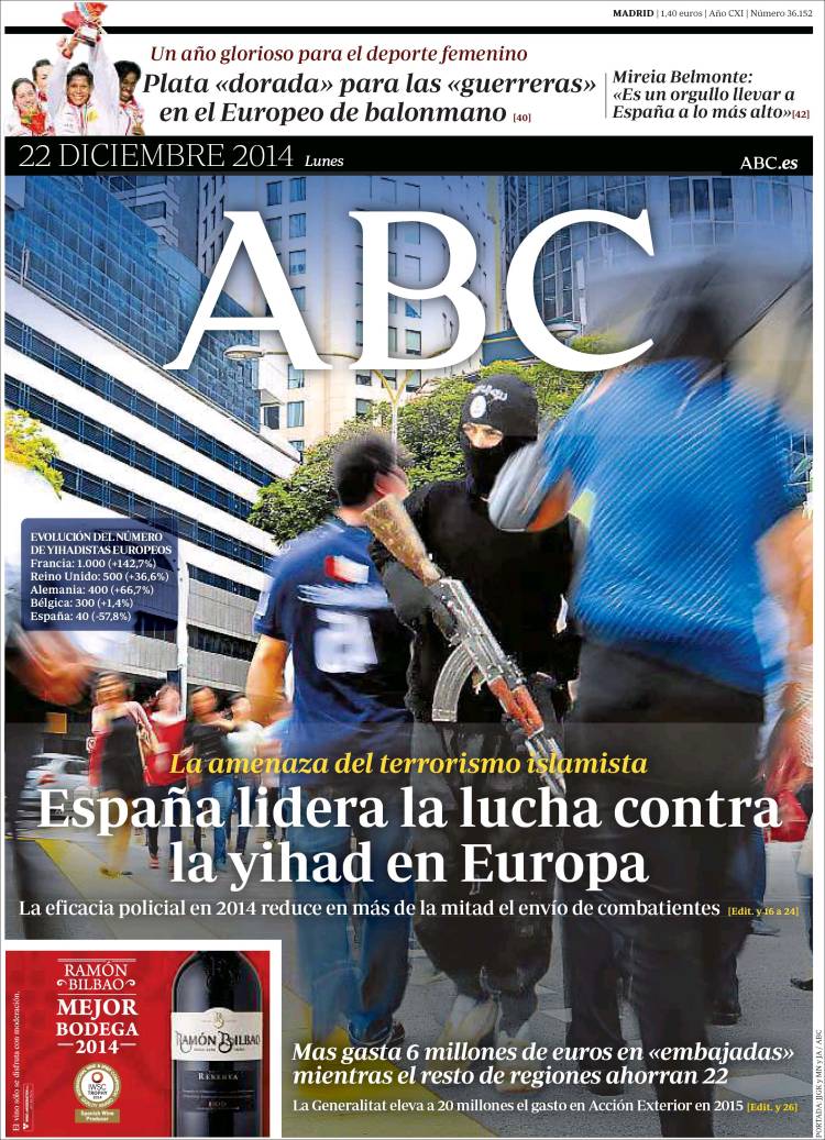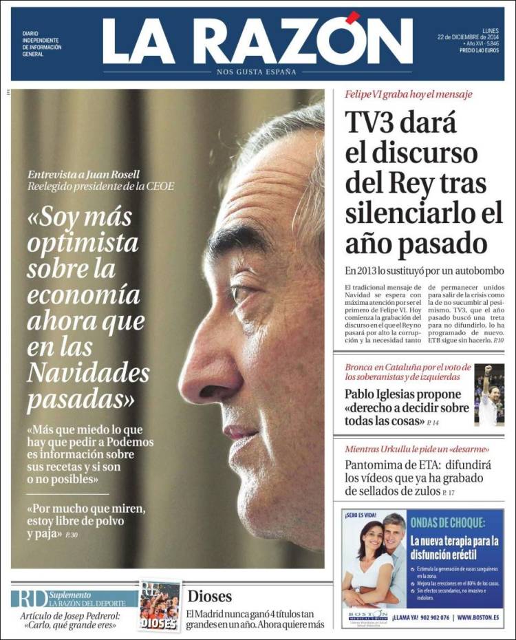 Portadas de los diarios ABC, La Razón, As, El Periódico y La Vanguardia.