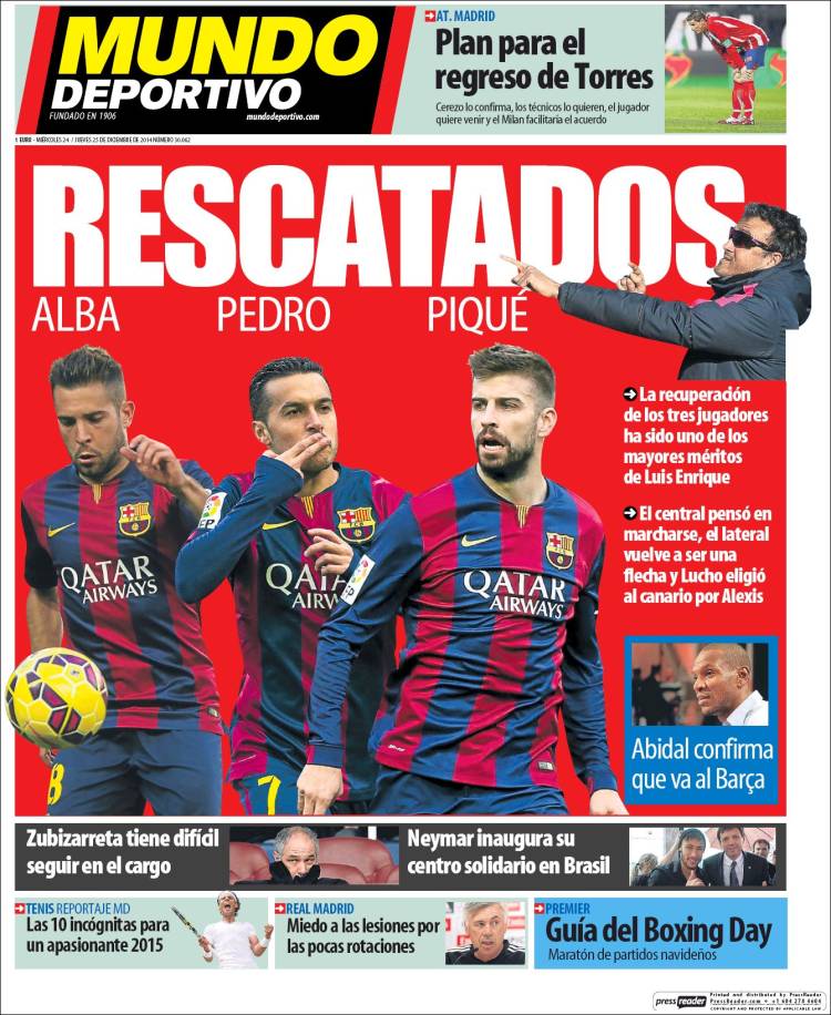 Portadas de los diarios El Mundo, El País, ABC, La Razón, La Vanguardia, El Periódico, Cinco Días, El Economista, Expansión, Marca, As, Mundo Deportivo y Sport.