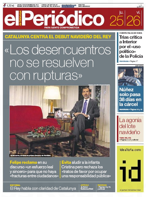 "El Rey pide el reencuentro emocional con Catalunya"