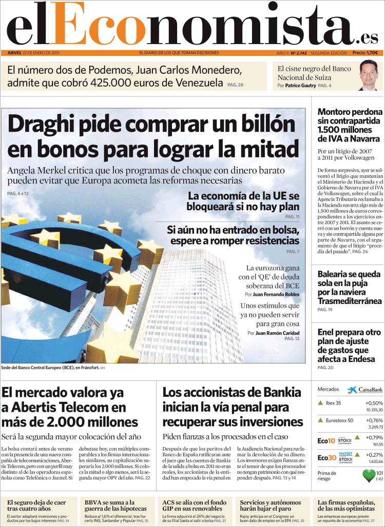 "Draghi pide comprar un billón de bonos para lograr la mitad"