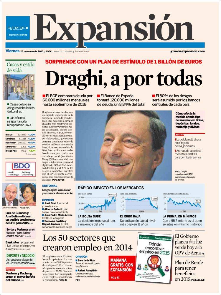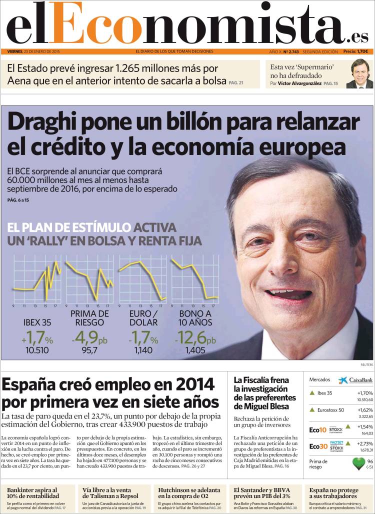 "Draghi pone un billón para relanzar el crédito y la economía europea"