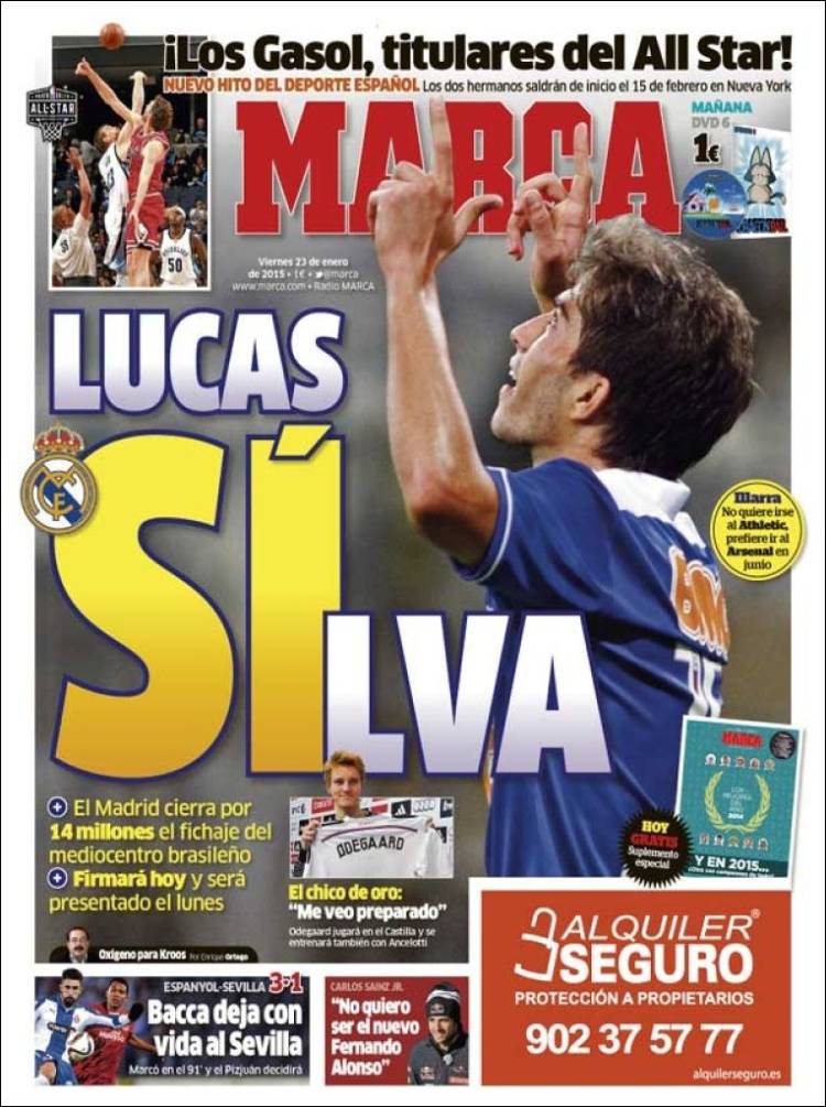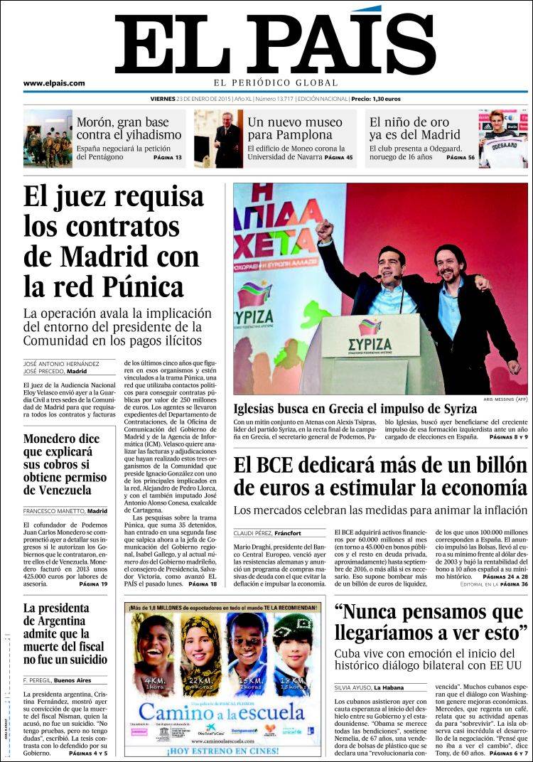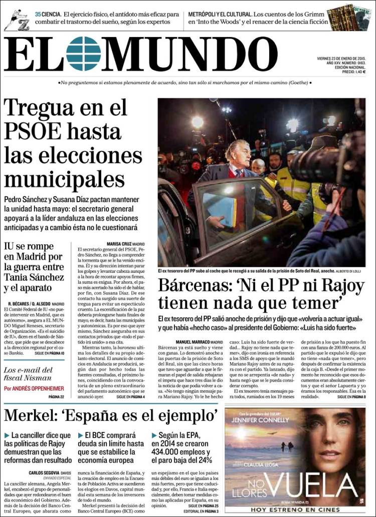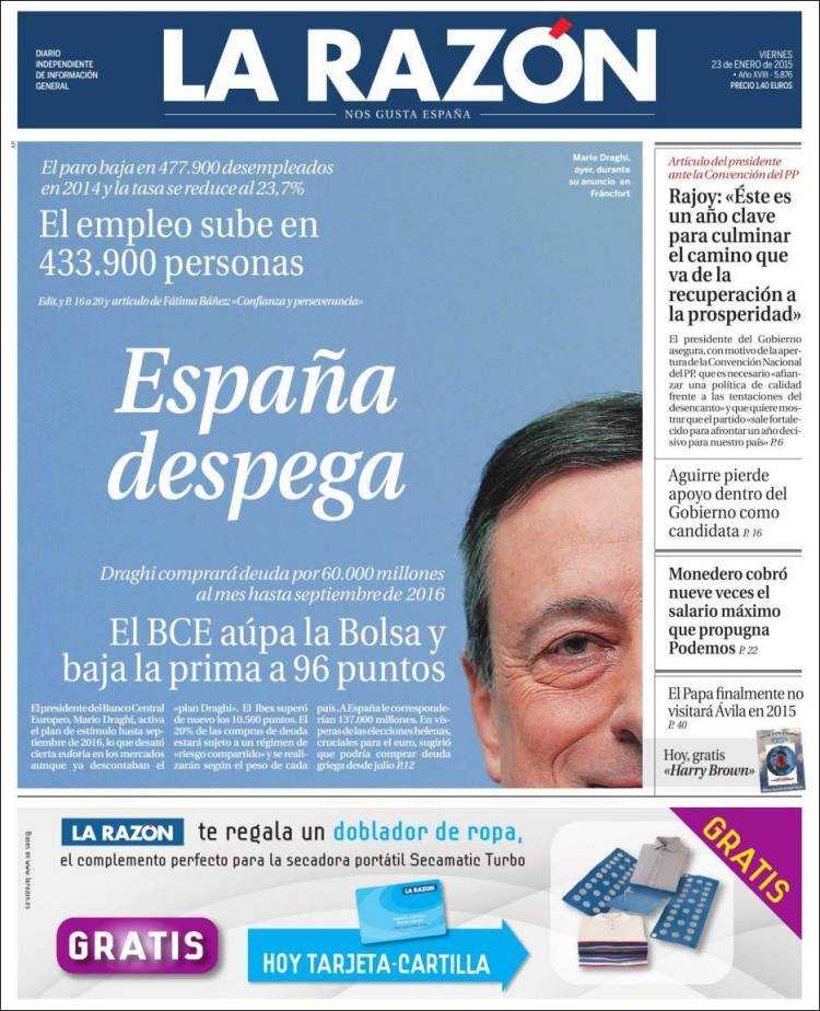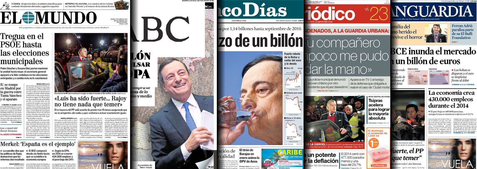 Portadas de los diarios El Mundo, El País, ABC, La Razón, La Vanguardia, El Periódico, Cinco Días, El Economista, Expansión, Marca, As, Mundo Deportivo y Sport.