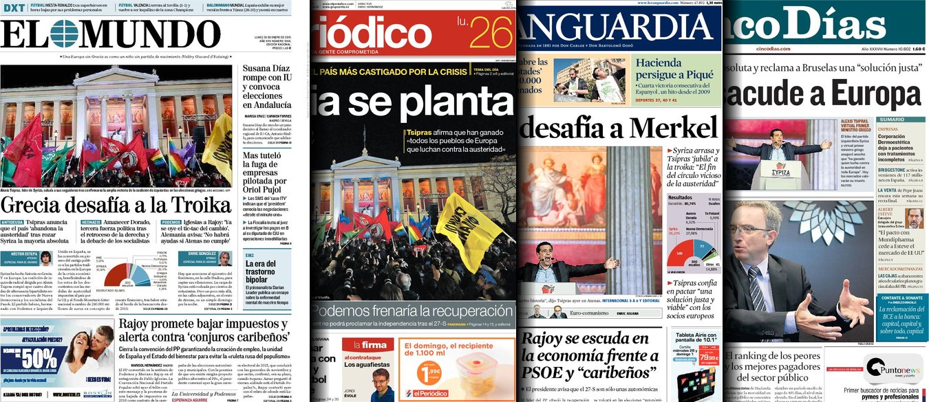 Portadas de los diarios El Mundo, El País, ABC, La Razón, La Vanguardia, El Periódico, Cinco Días, El Economista, Expansión, Marca, As, Mundo Deportivo y Sport.
