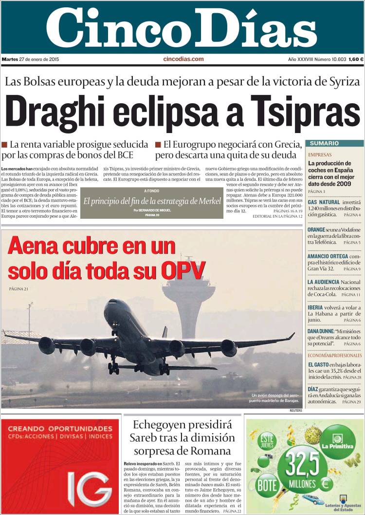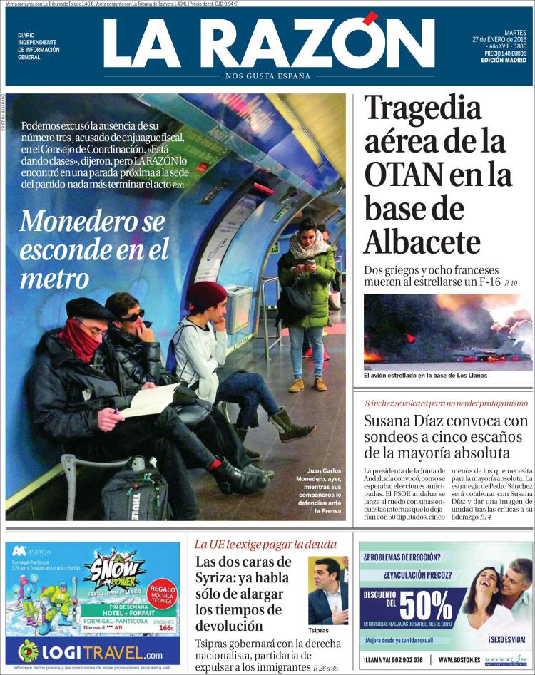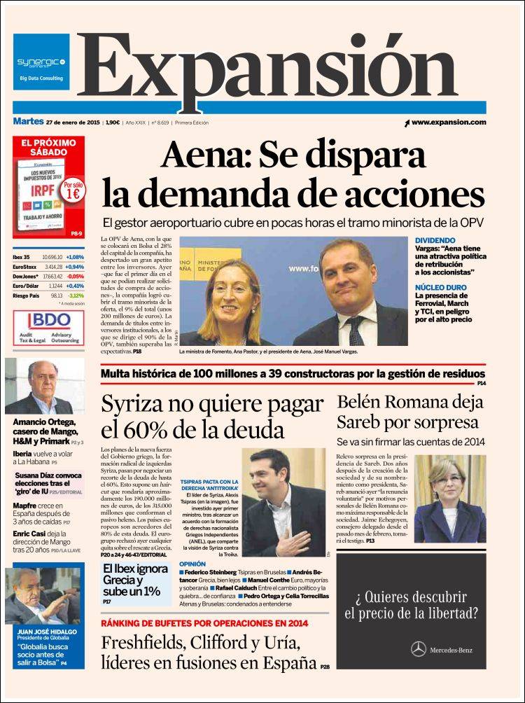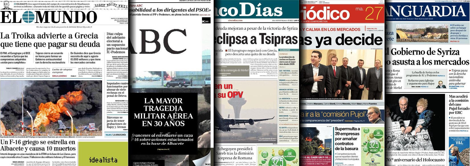 Portadas de los diarios El Mundo, El País, ABC, La Razón, La Vanguardia, El Periódico, Cinco Días, El Economista, Expansión, Marca, As, Mundo Deportivo y Sport.
