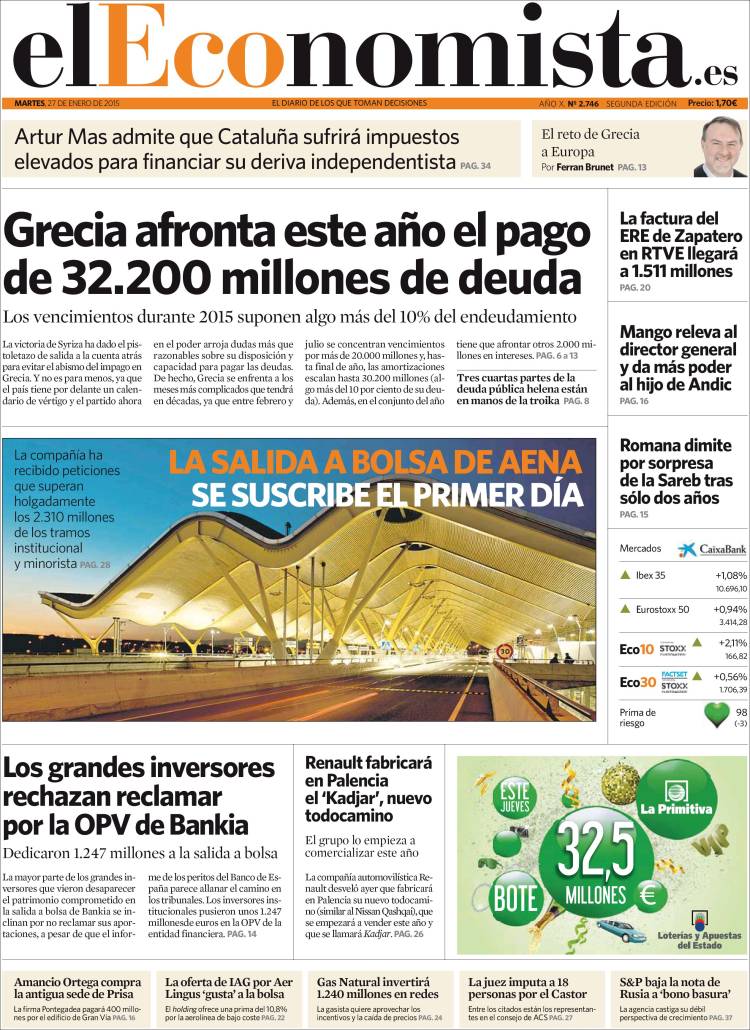 "Grecia afronta este año el pago de 32.200 millones de deuda"