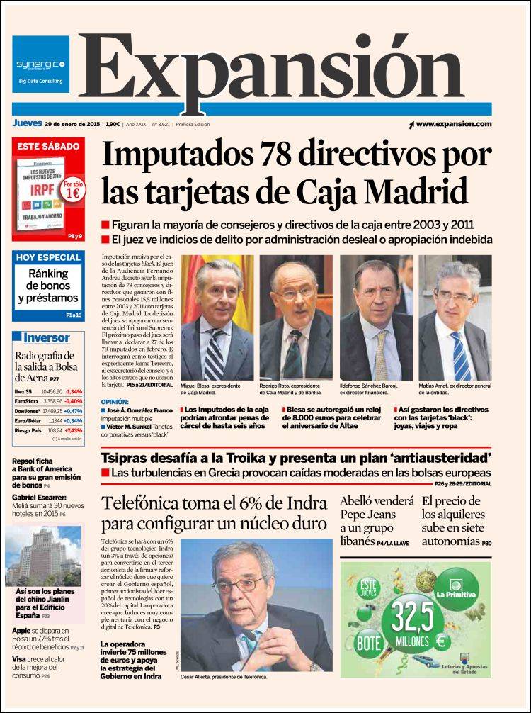 "Imputados 78 directivos por las tarjetas de Caja Madrid"