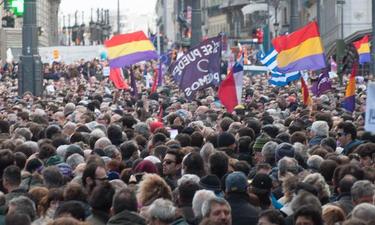 Algo más de 50.000 personas respondieron a la llamada de Podemos. Iglesias se presentó como el el "don Quijote" del pueblo.