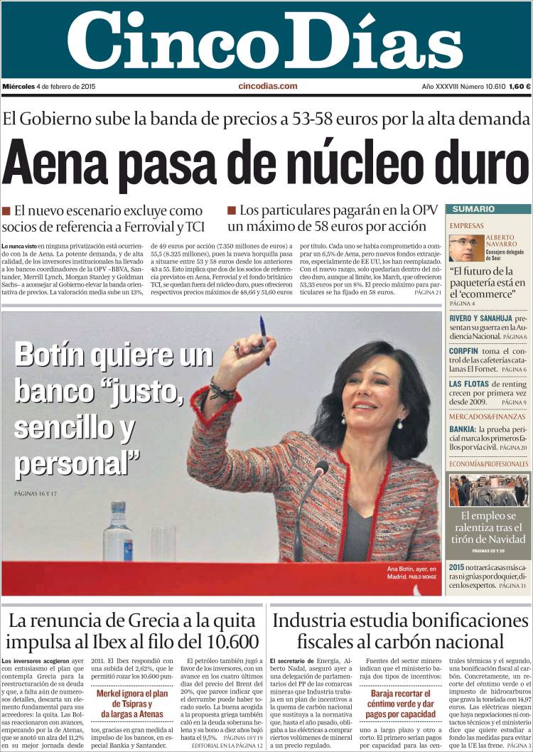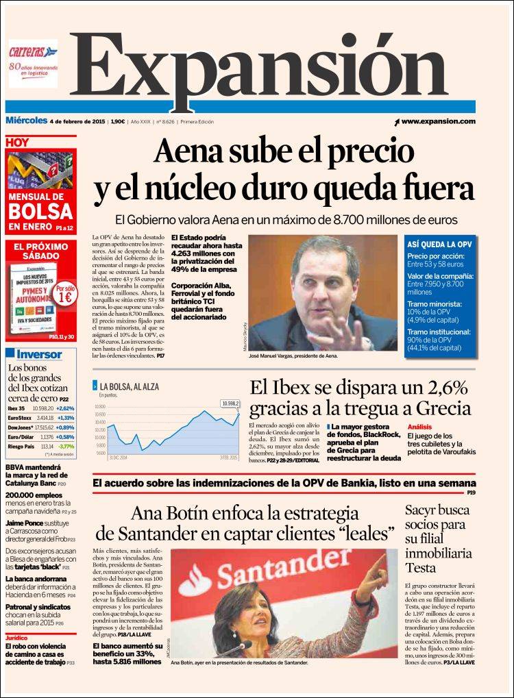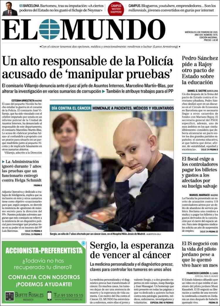 Portadas de los diarios El Mundo, El País, ABC, La Razón, La Vanguardia, El Periódico, Cinco Días, El Economista, Expansión, Marca, As, Mundo Deportivo y Sport.