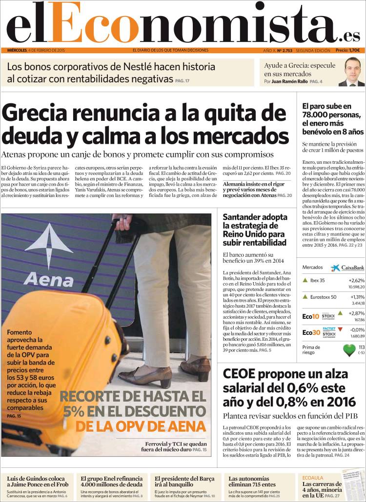 "Grecia renuncia a la quita de deuda y calma a los mercados"