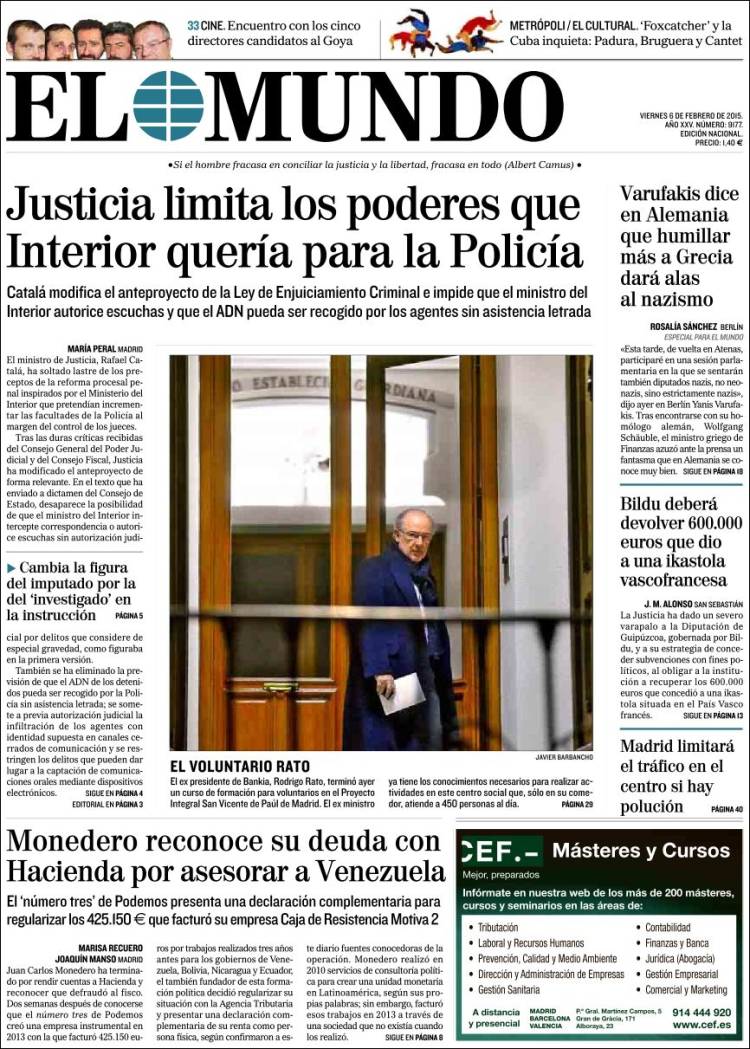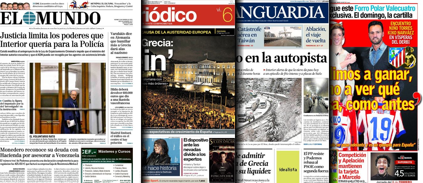 Portadas de los diarios El Mundo, El País, ABC, La Razón, La Vanguardia, El Periódico, Cinco Días, El Economista, Expansión, Marca, As, Mundo Deportivo y Sport.
