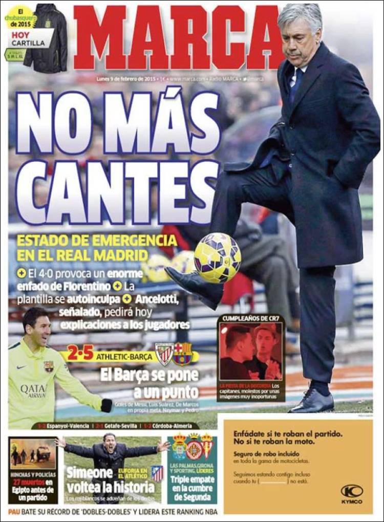 Portadas de los diarios El Mundo, El País, ABC, La Razón, La Vanguardia, El Periódico, Cinco Días, El Economista, Expansión, Marca, As, Mundo Deportivo y Sport.