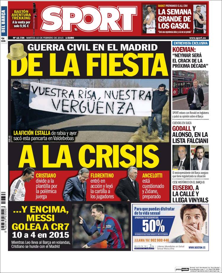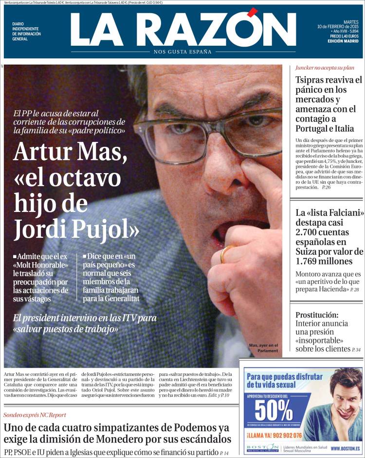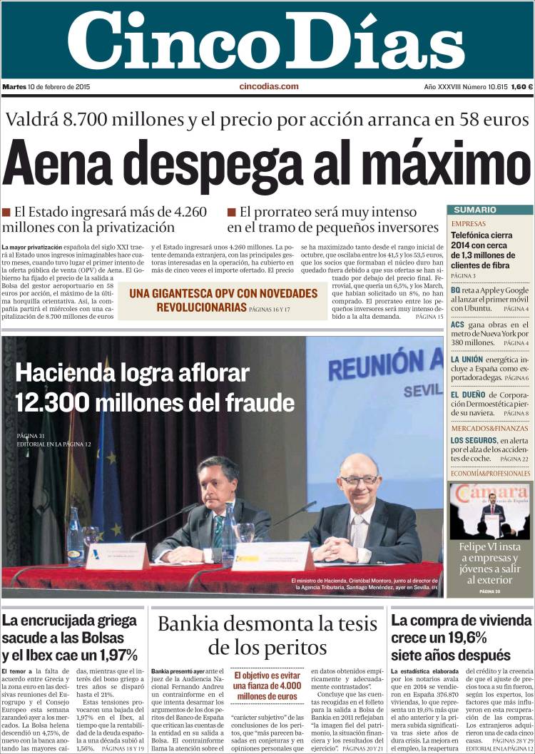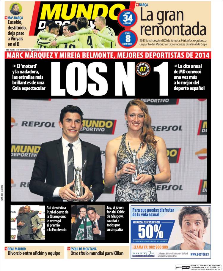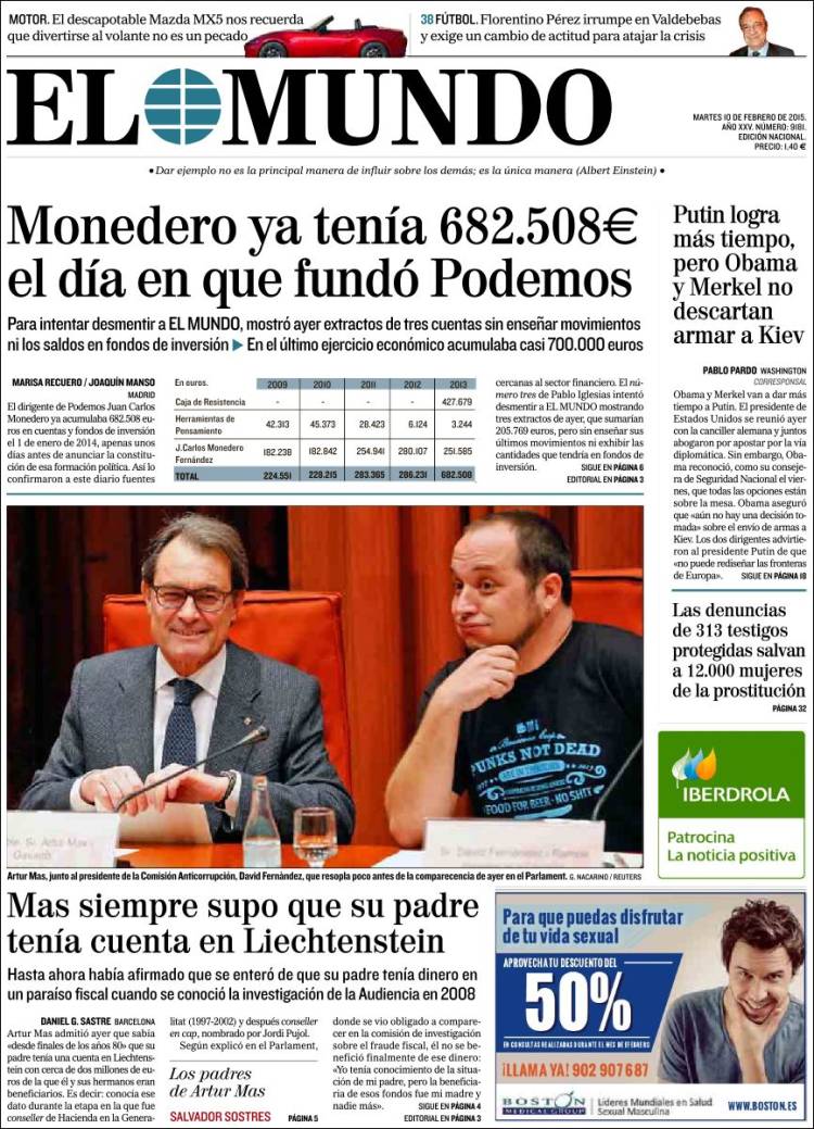 Portadas de los diarios El Mundo, El País, ABC, La Razón, La Vanguardia, El Periódico, Cinco Días, El Economista, Expansión, Marca, As, Mundo Deportivo y Sport.