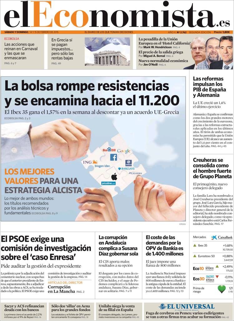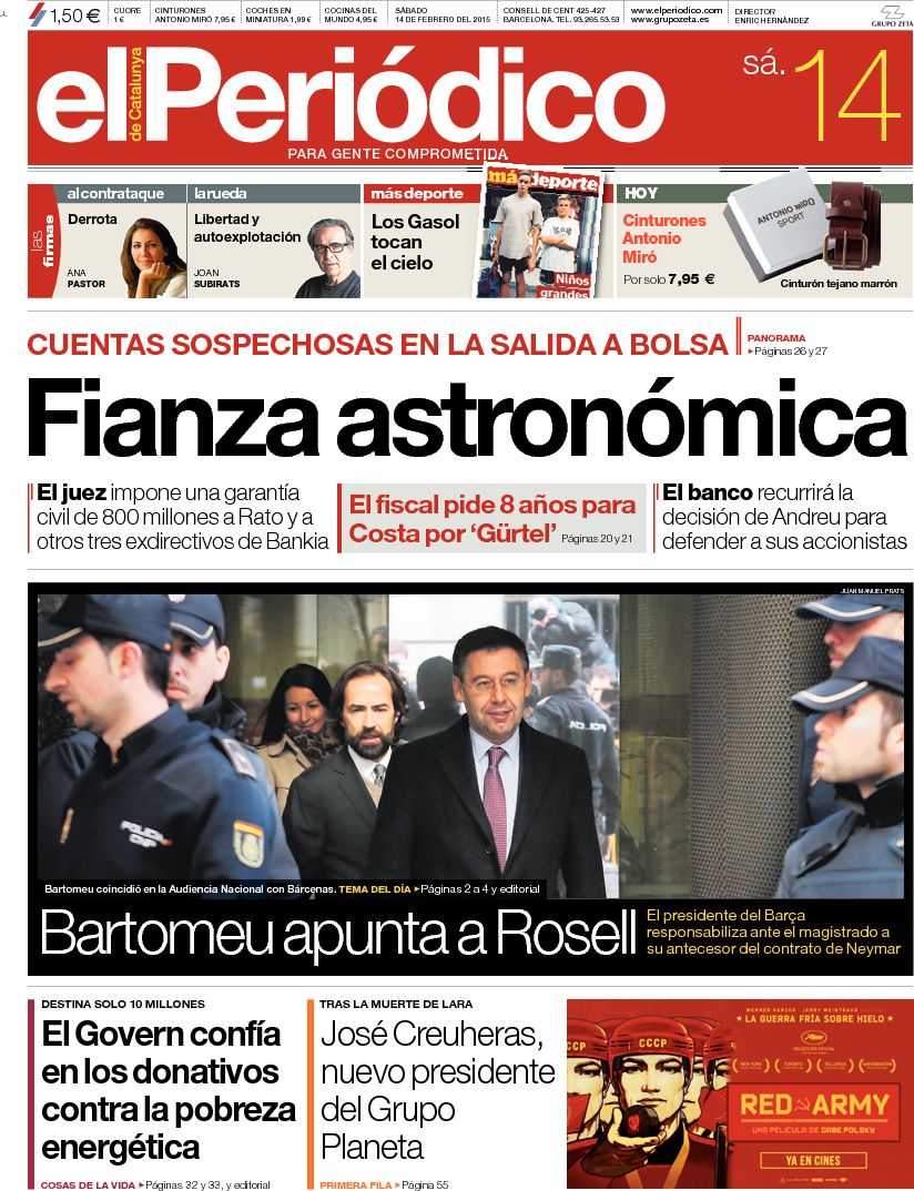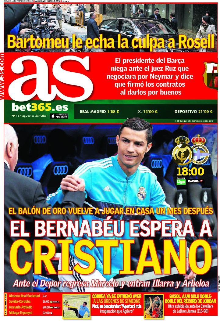 Portadas de los diarios ABC, La Razón, As, Cinco Días, El Periódico y La Vanguardia.