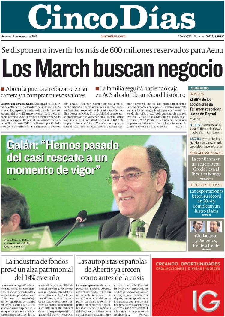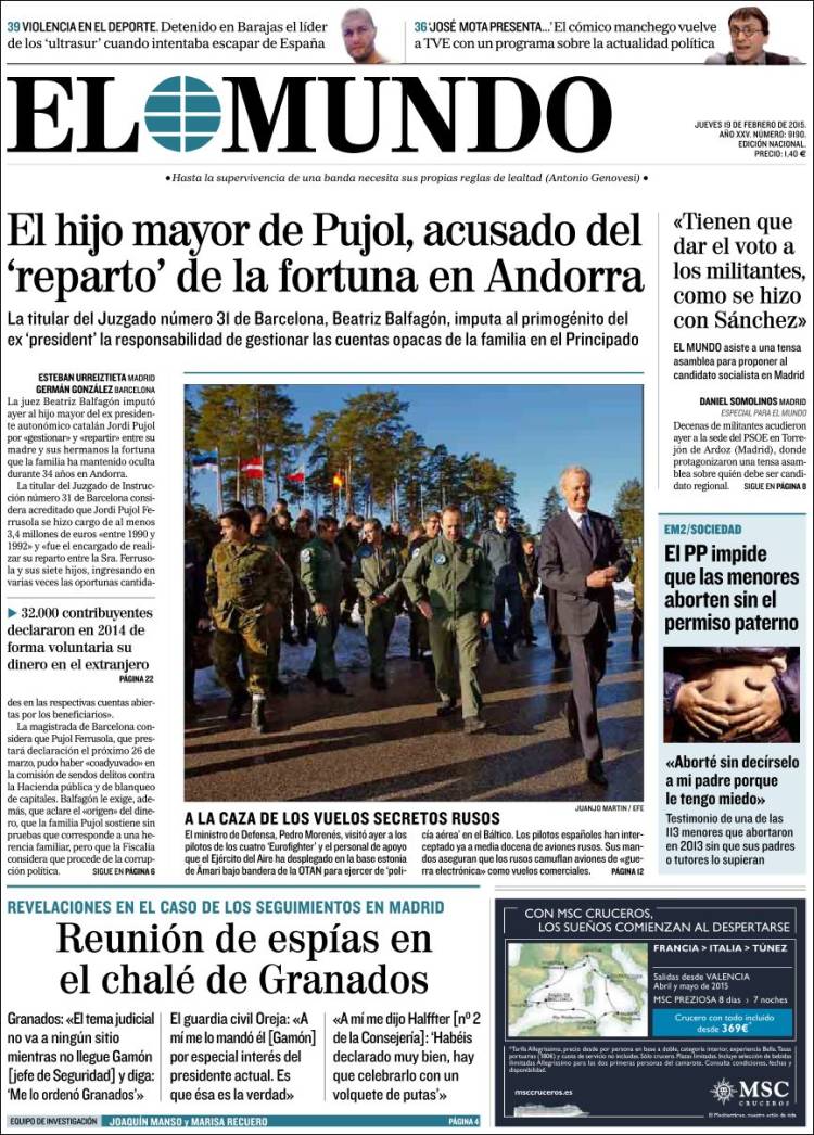 Portadas de los diarios El Mundo, El País, ABC, La Razón, La Vanguardia, El Periódico, Cinco Días, Expansión, Marca, As, Mundo Deportivo y Sport.