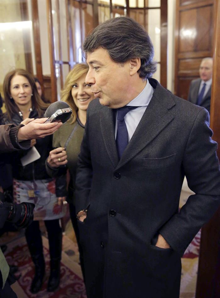El presidente de la Comunidad de Madrid, Ignacio González, contesta a las preguntas de los periodistas a su llegada al Congreso de los Diputados, donde asiste como invitado al debate