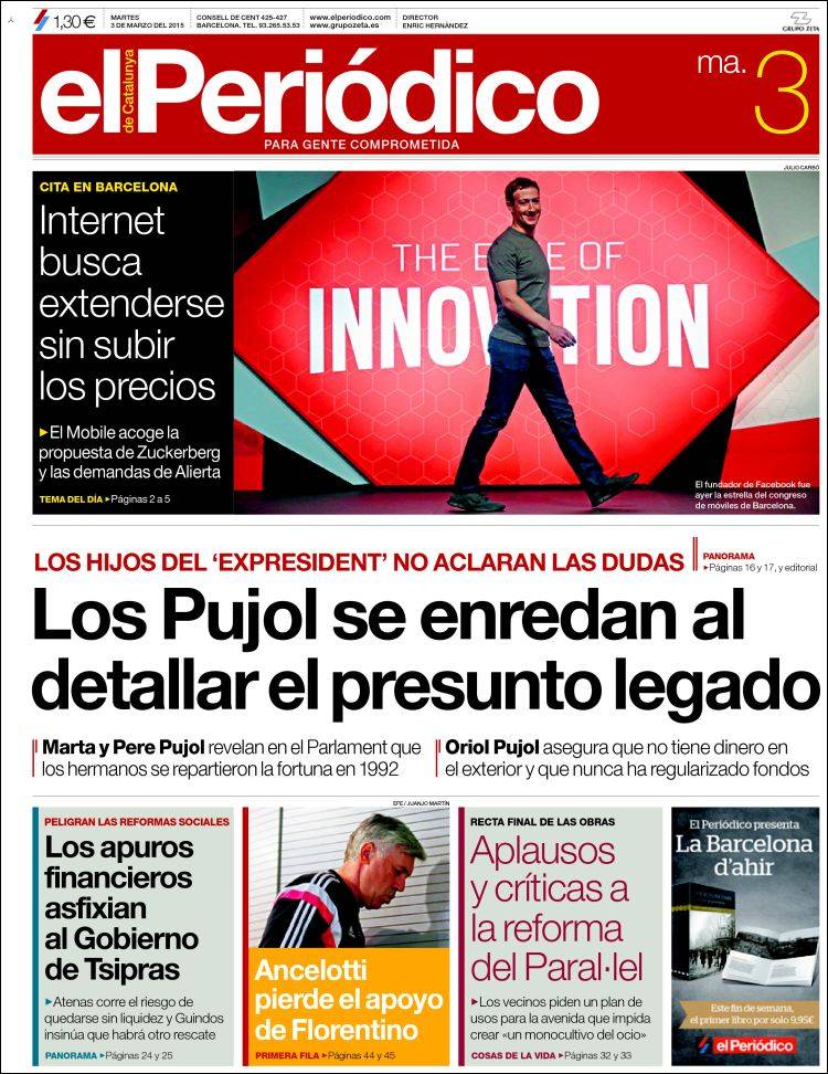 Portadas de los diarios El Mundo, El País, ABC, La Razón, La Vanguardia, El Periódico, Cinco Días, El Economista, Expansión, Marca, As, Mundo Deportivo y Sport.