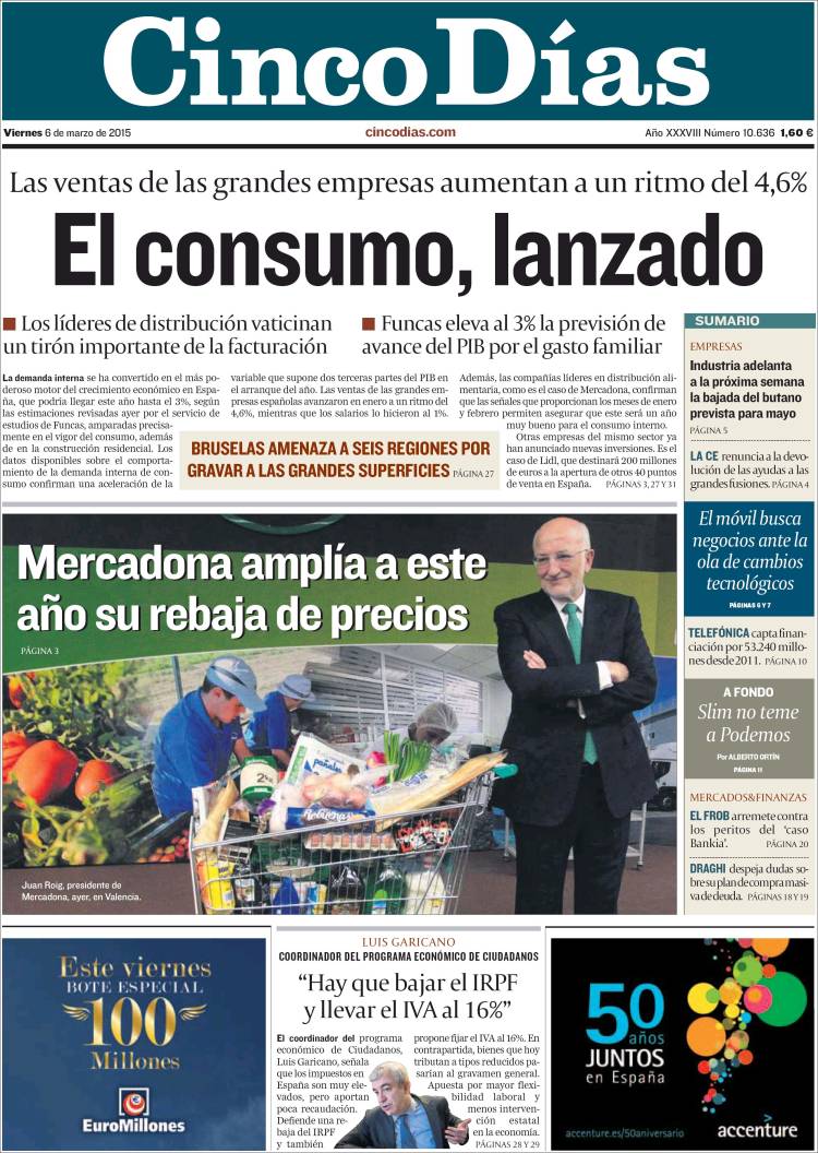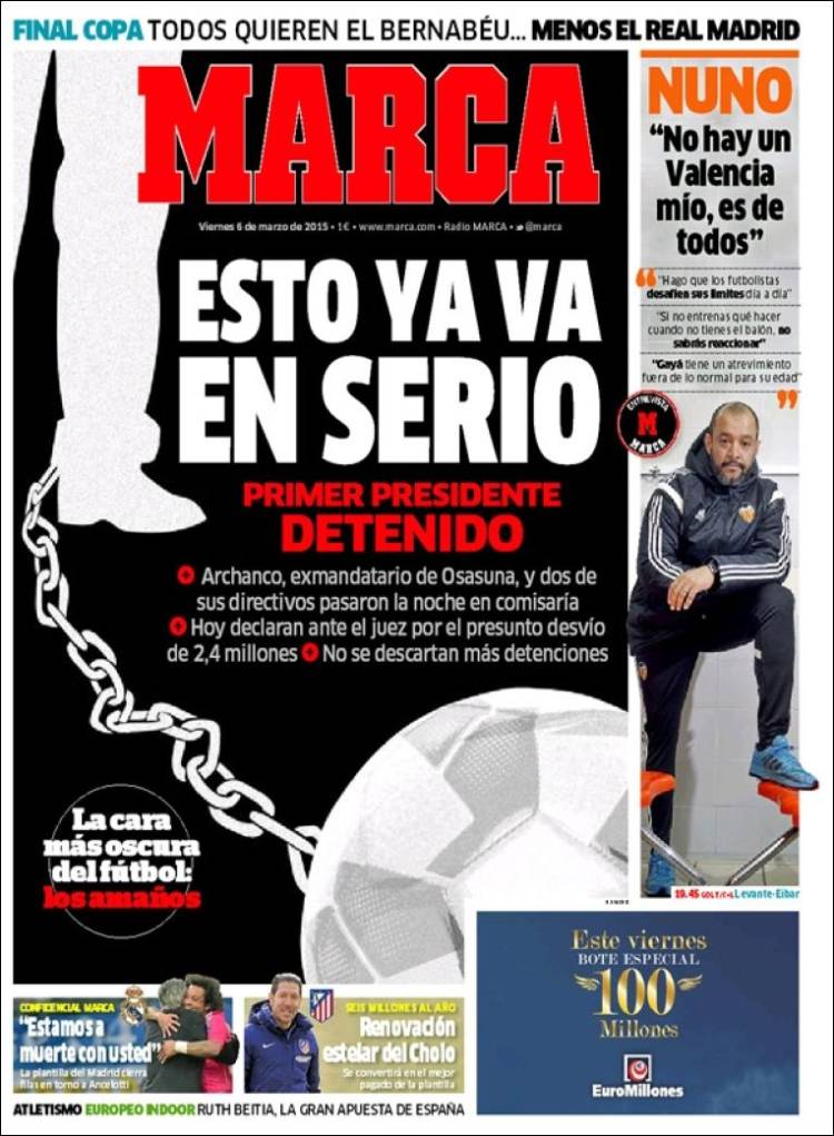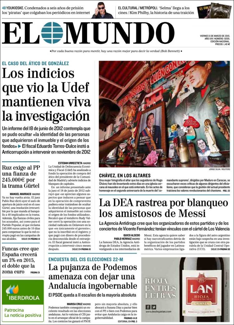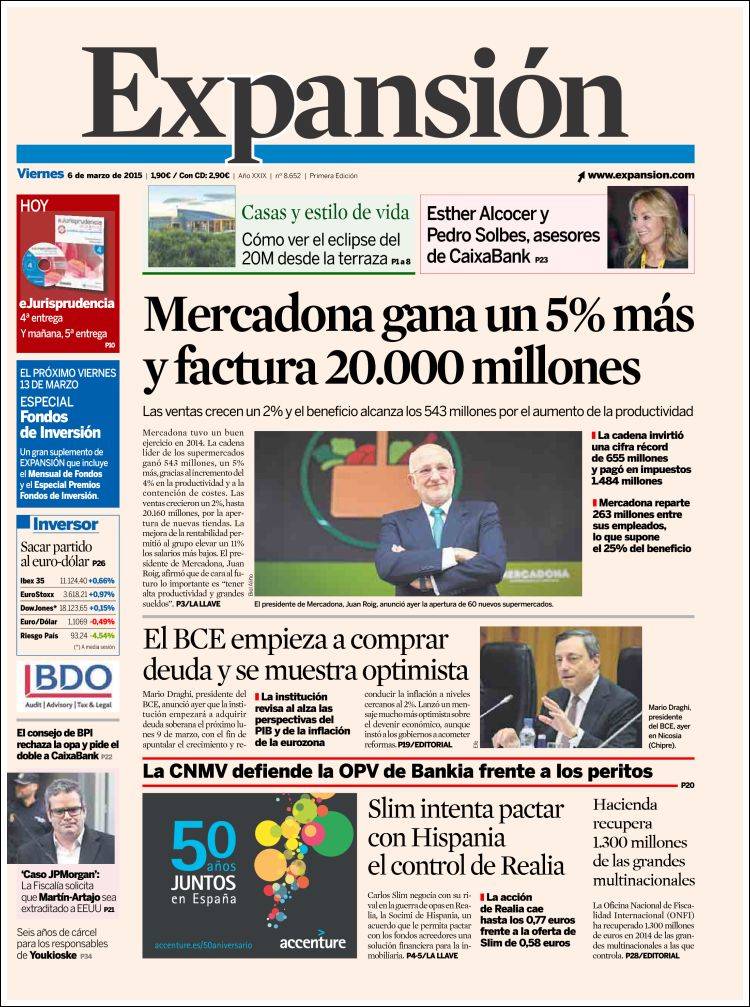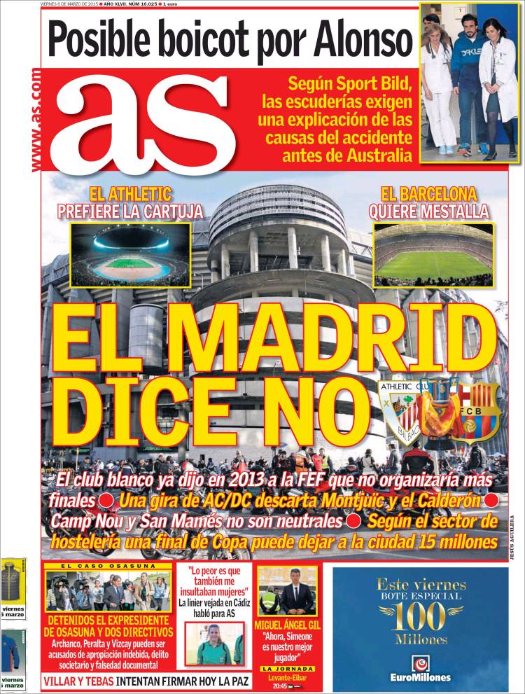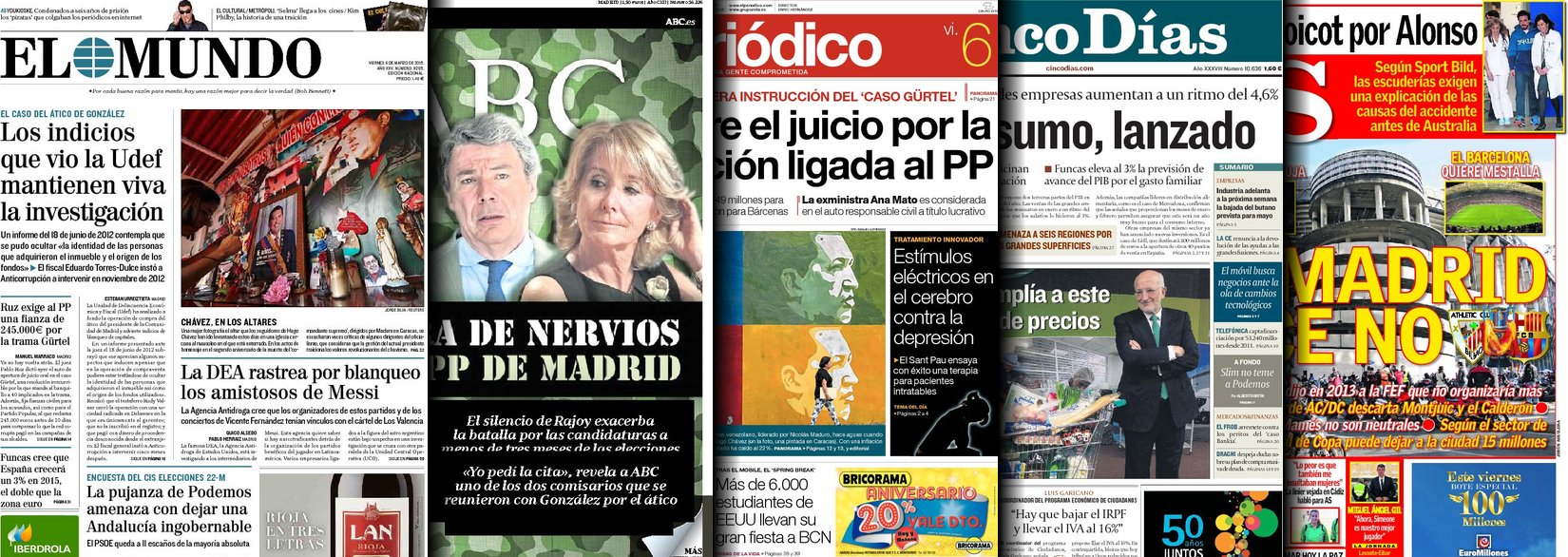 Portadas de los diarios El Mundo, El País, ABC, La Razón, La Vanguardia, El Periódico, Cinco Días, El Economista, Expansión, Marca, As, Mundo Deportivo y Sport.