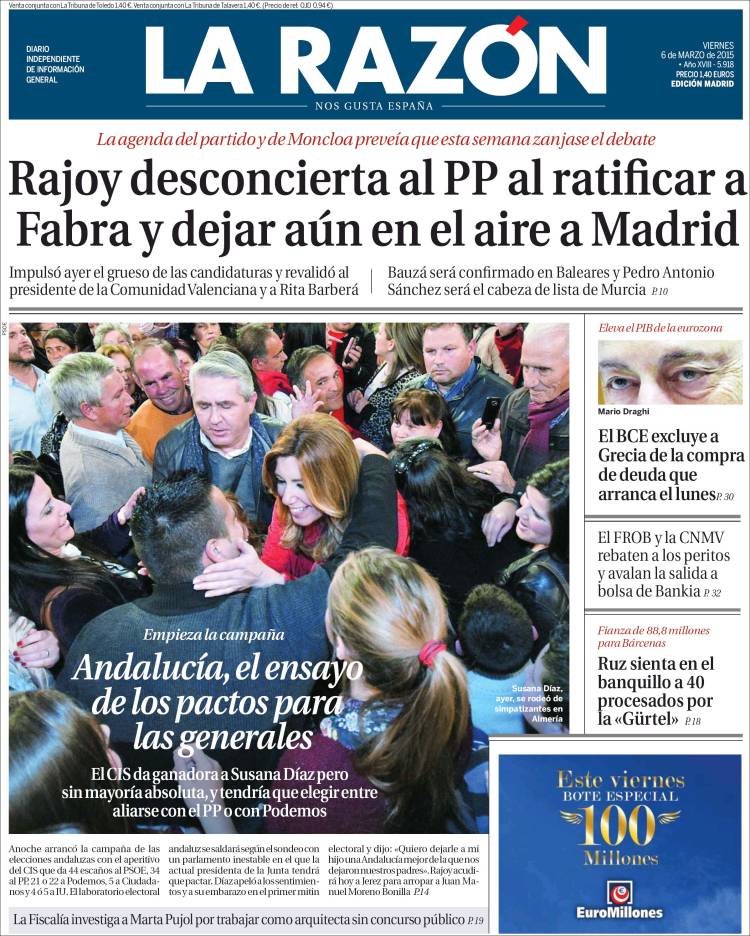 "Rajoy desconcierta al PP al ratificar a Fabra y dejar aún en ele aire a Madrid"