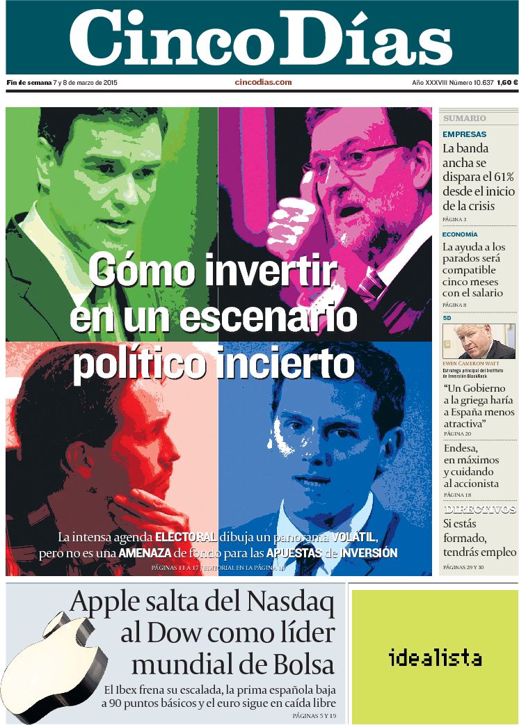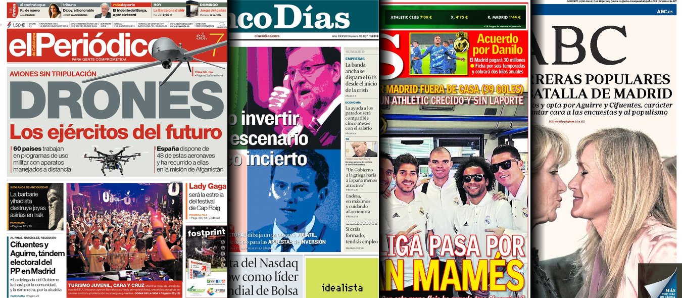 Portadas de los diarios ABC, As, Cinco Días, El Periódico y La Vanguardia.