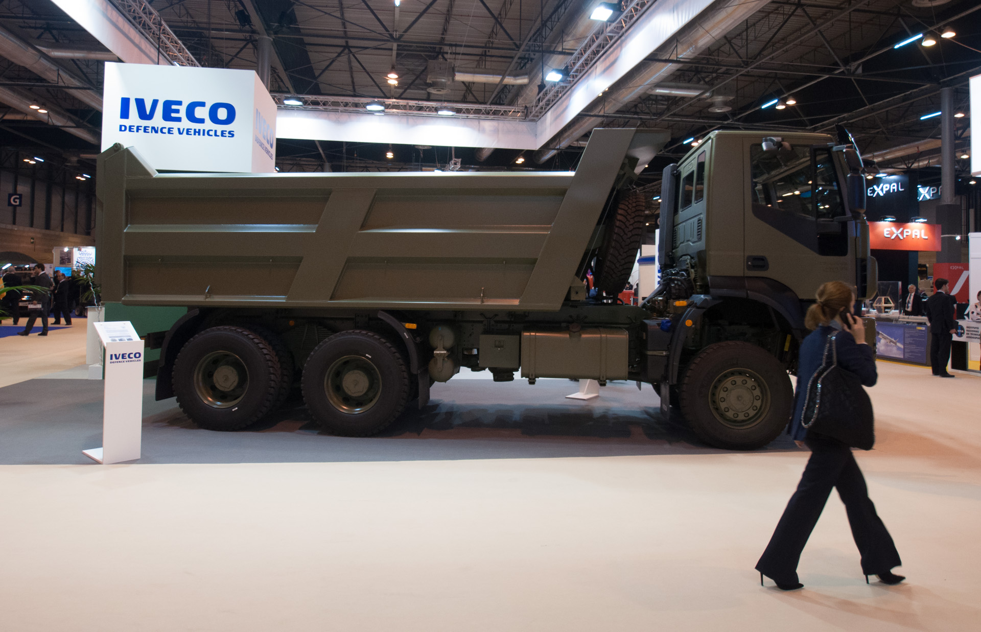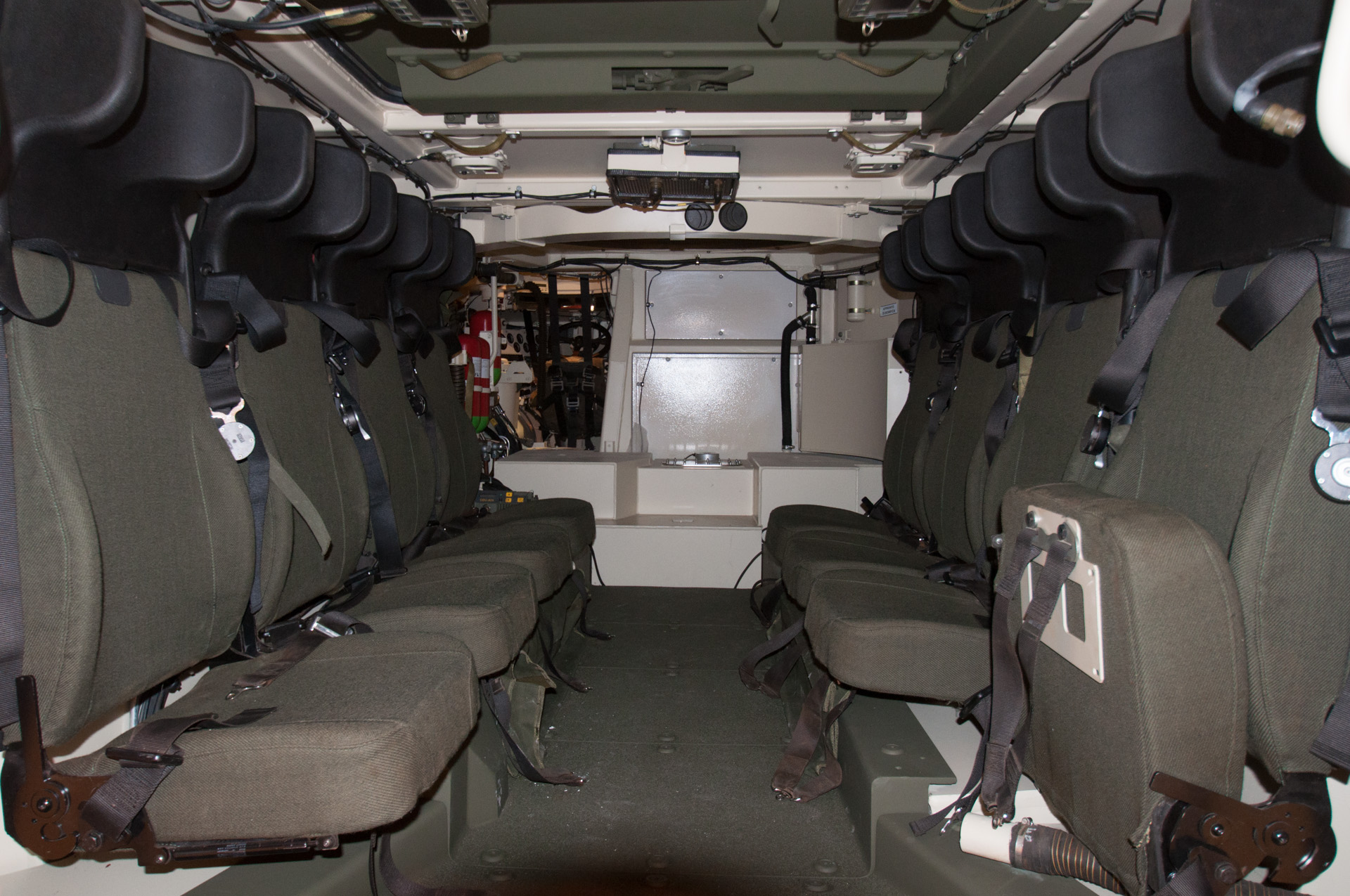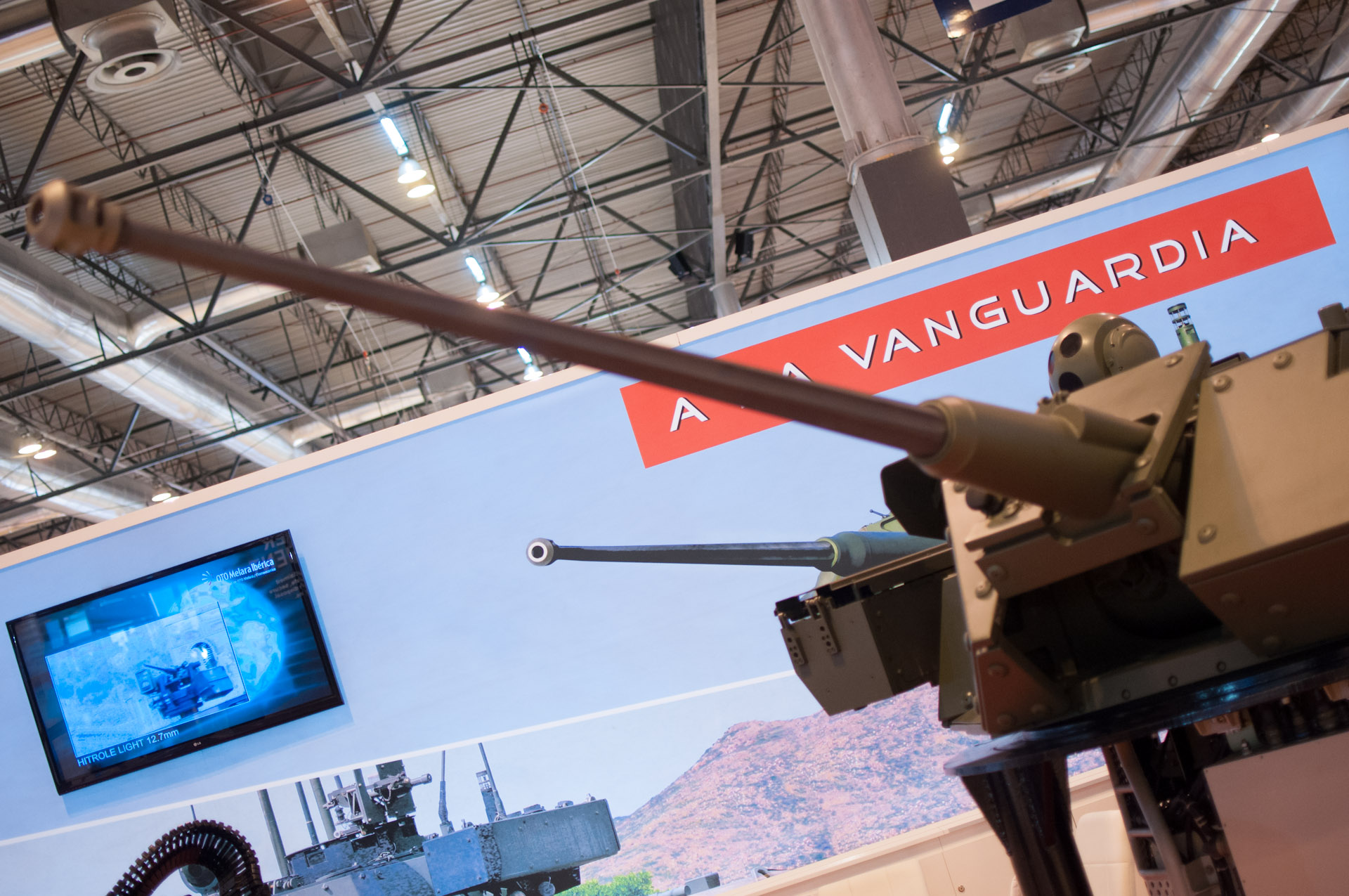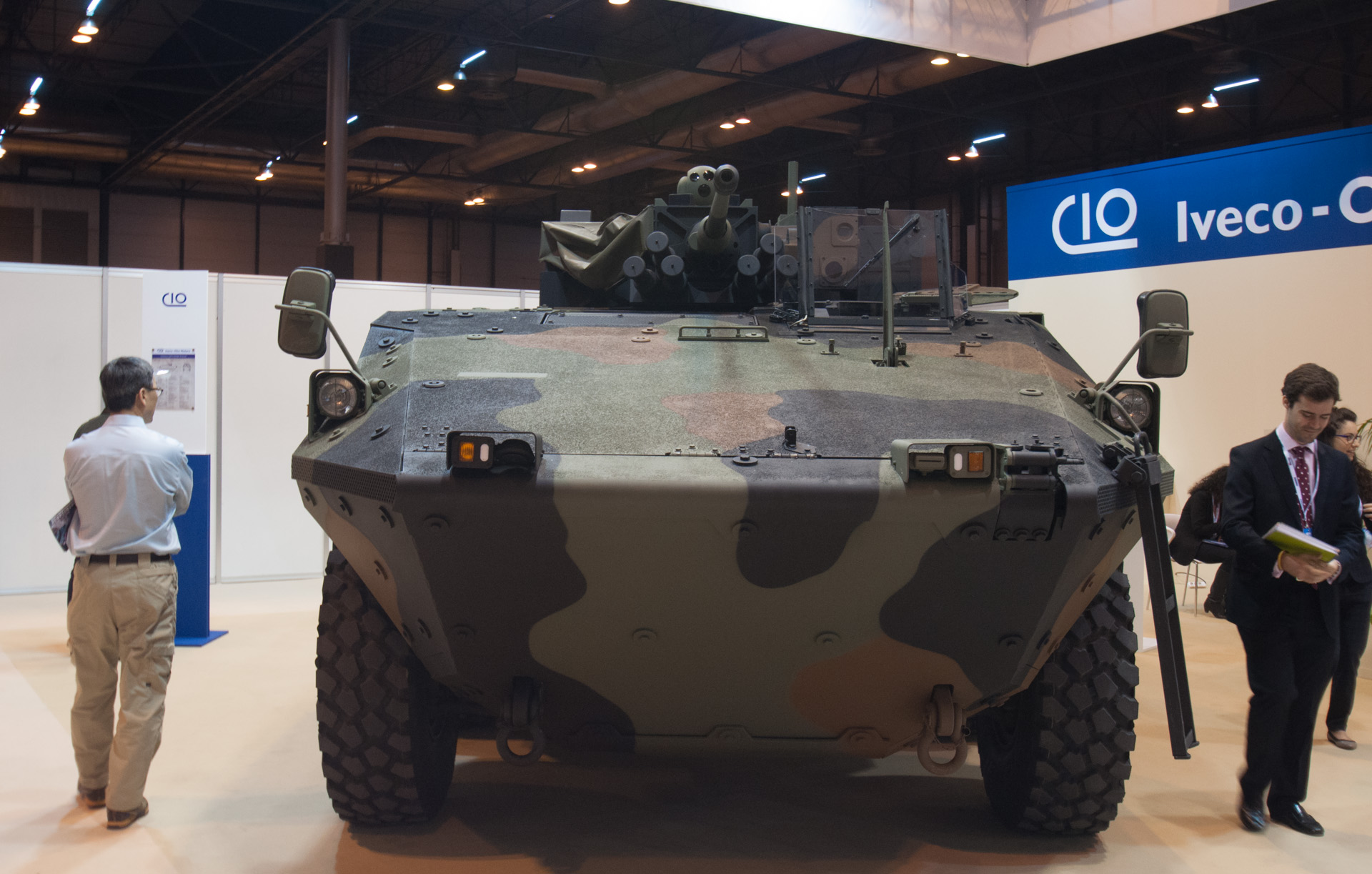 Un detalle del vehículo español Piraña 5 y su motor a la derecha.