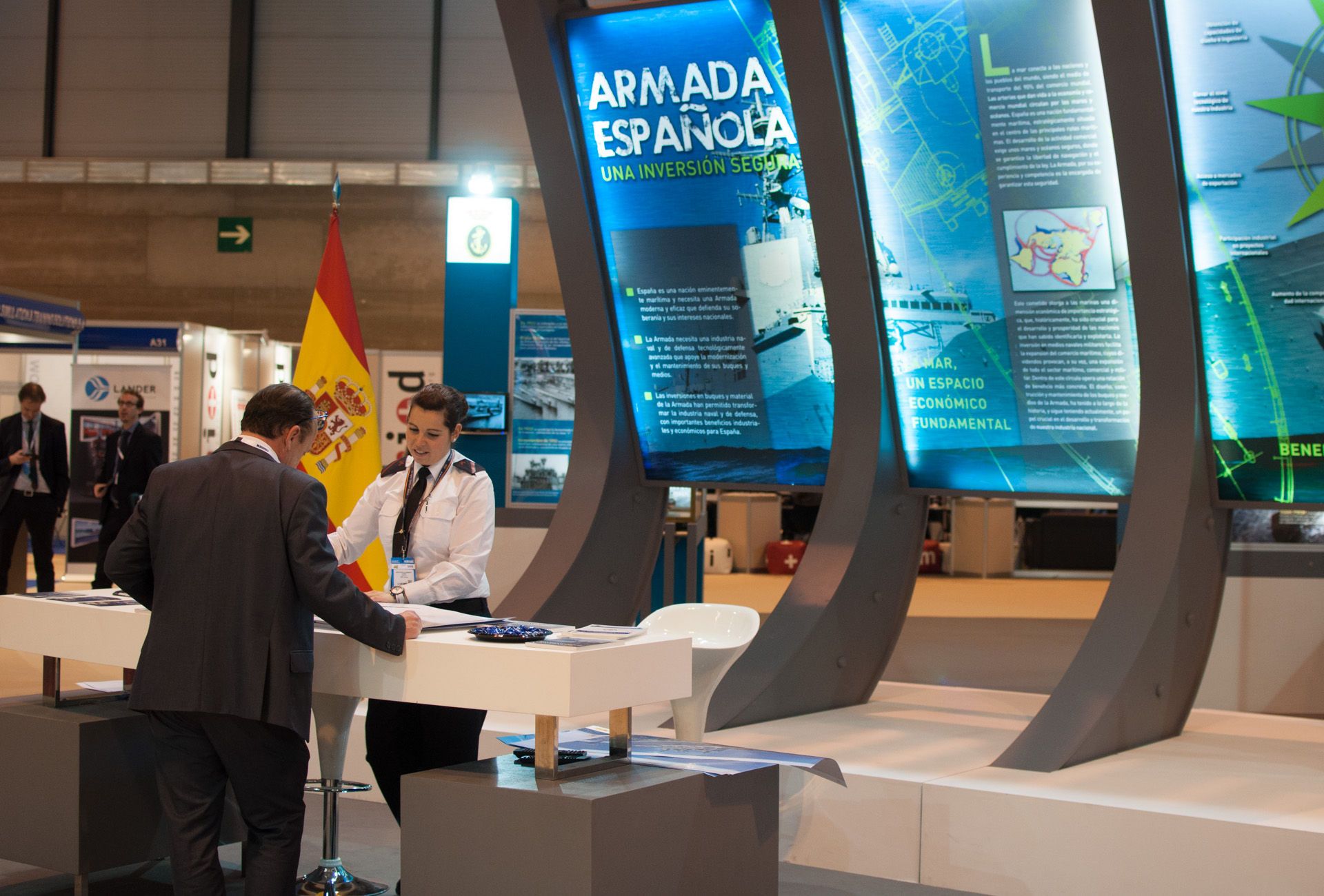 Una oficial informa a un visitante en el stand de la Armada Española.