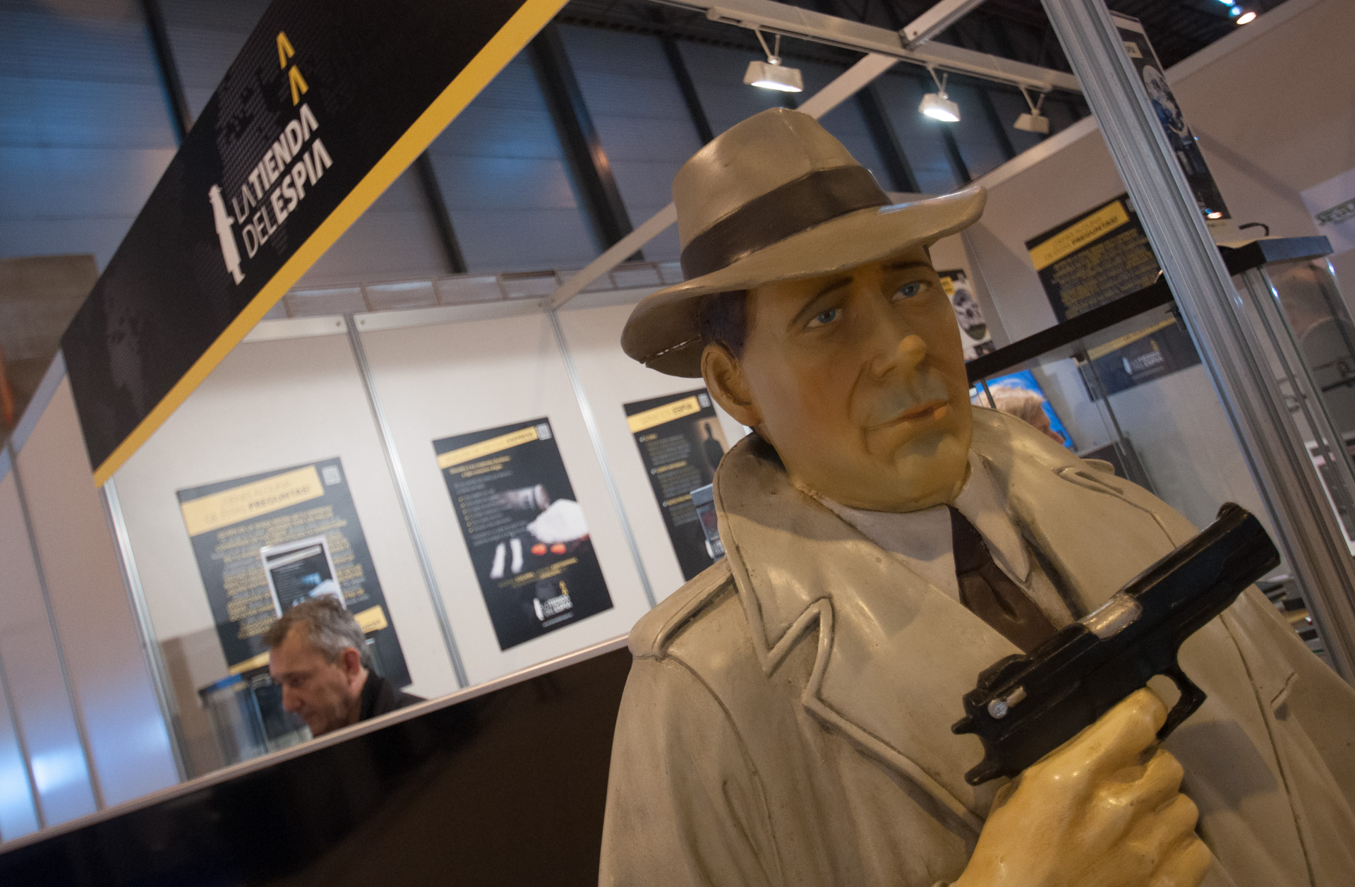 Como curiosidad, una figura de un espía, al más puro estilo Humphrey Bogart, en el stand de la marcad La tienda del espía.