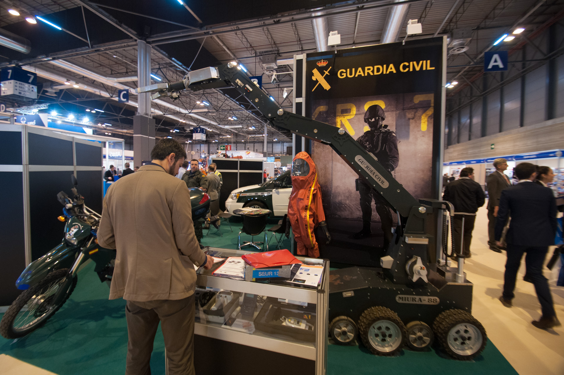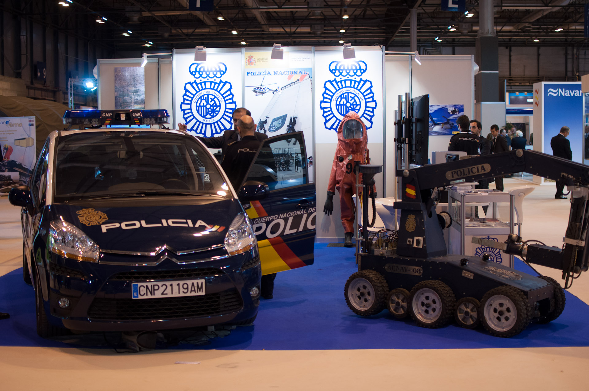 Stand de la Policía Nacional. En la imagen, un vehículo patrulla y un robot desactivador de explosivos