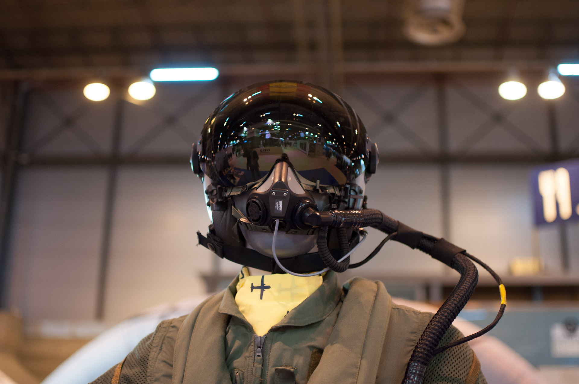 El casco de los pilotos de caza Eurofighter es imponente desde todos los puntos de vista.