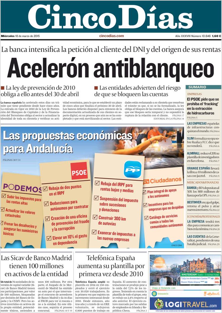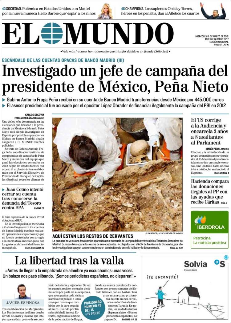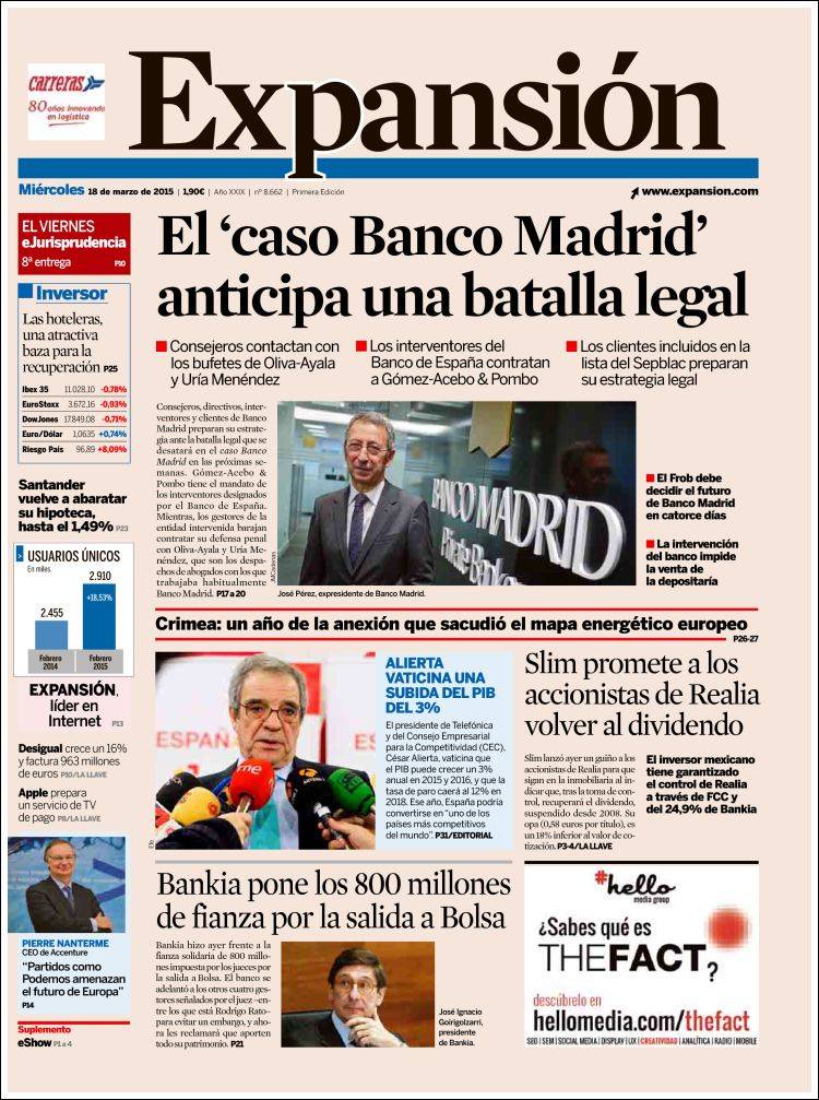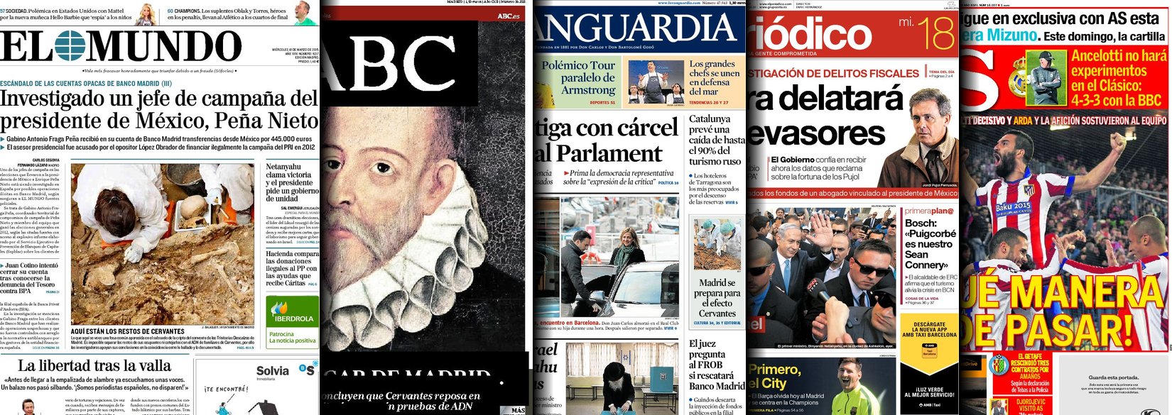 Portadas de los diarios El Mundo, El País, ABC, La Razón, La Vanguardia, El Periódico, Cinco Días, El Economista, Expansión, Marca, As, Mundo Deportivo y Sport.