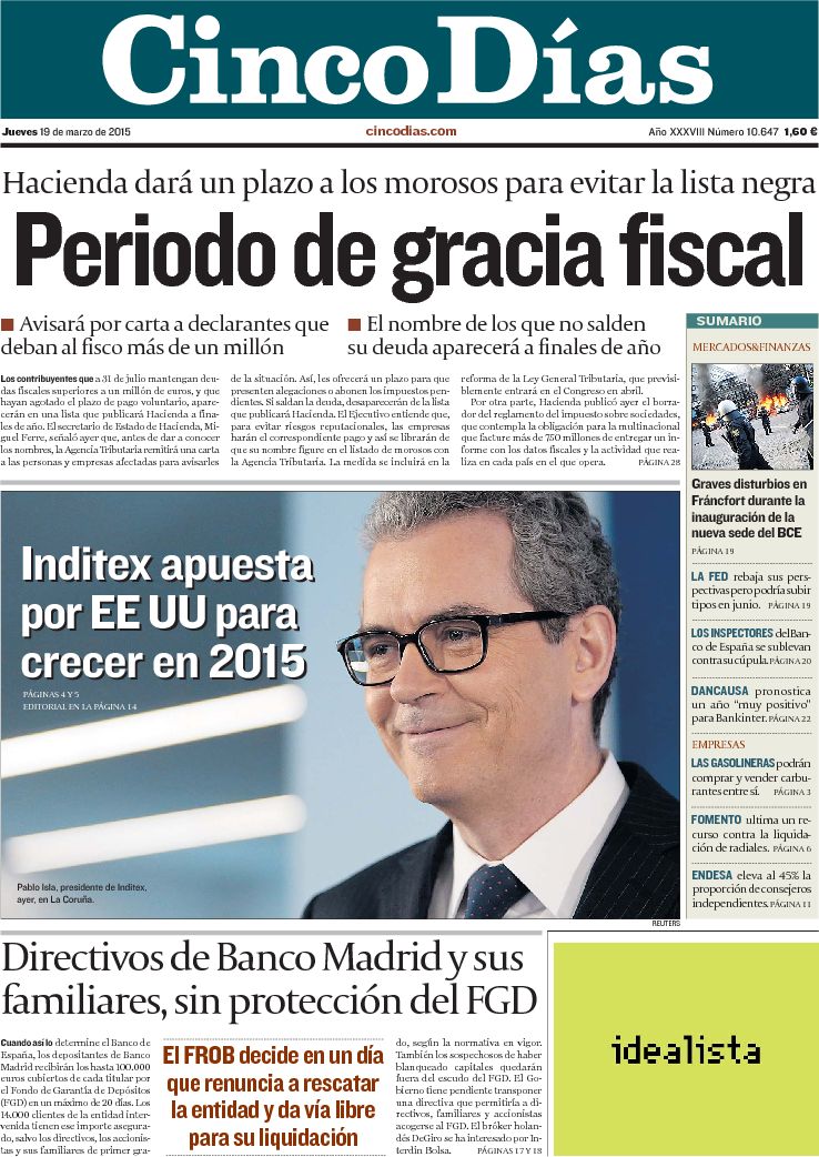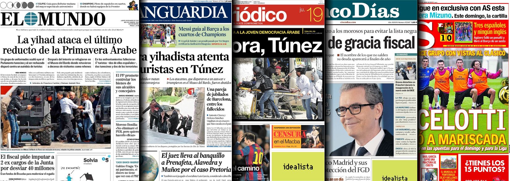 Portadas de los diarios ABC, As, Cinco Días, El Periódico y La Vanguardia.