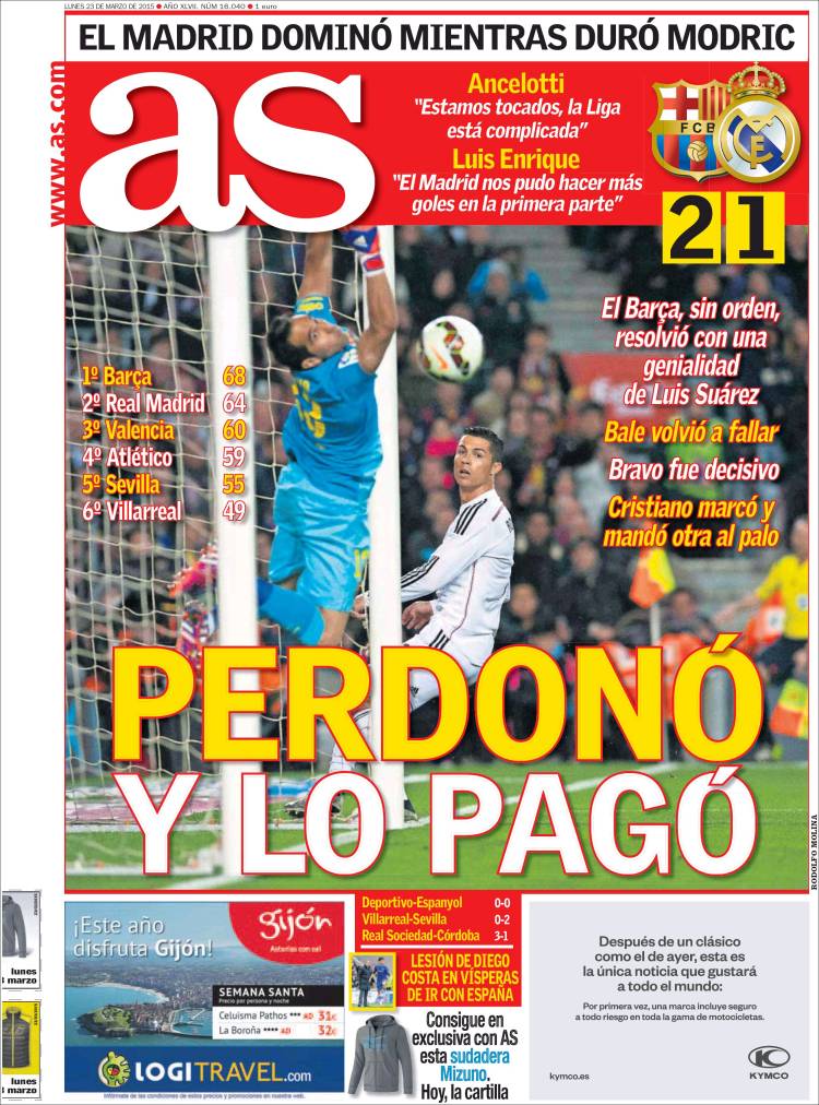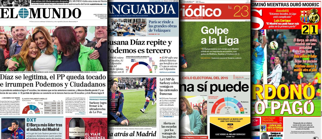 Portadas de los diarios El Mundo, El País, ABC, La Razón, La Vanguardia, El Periódico, Cinco Días, El Economista, Expansión, Marca, As, Mundo Deportivo y Sport.