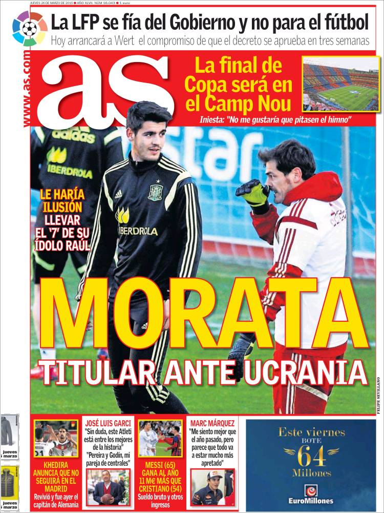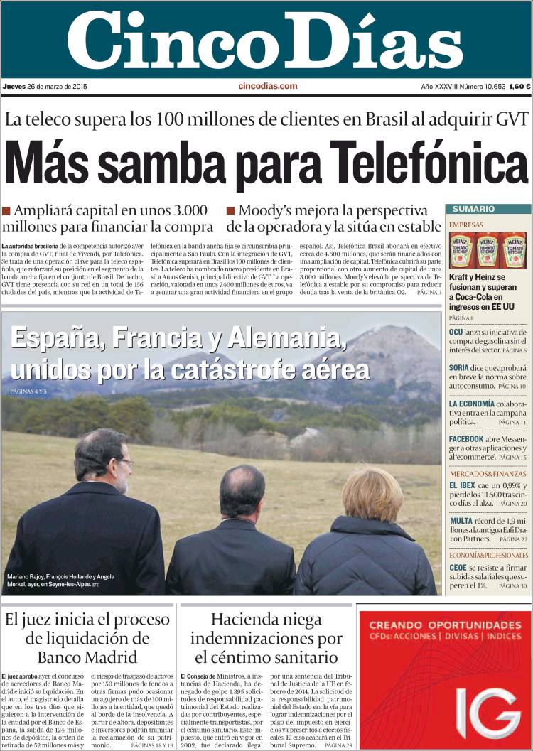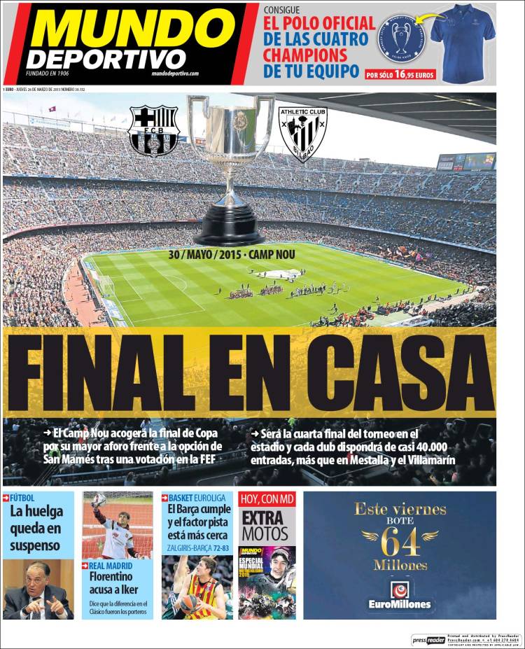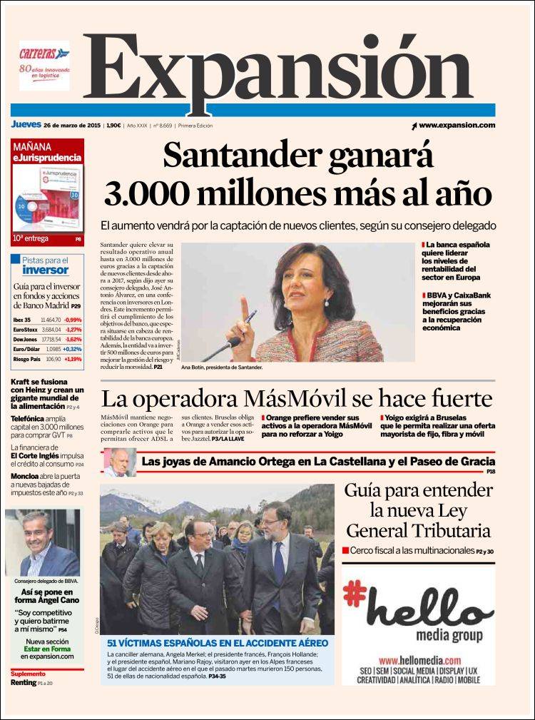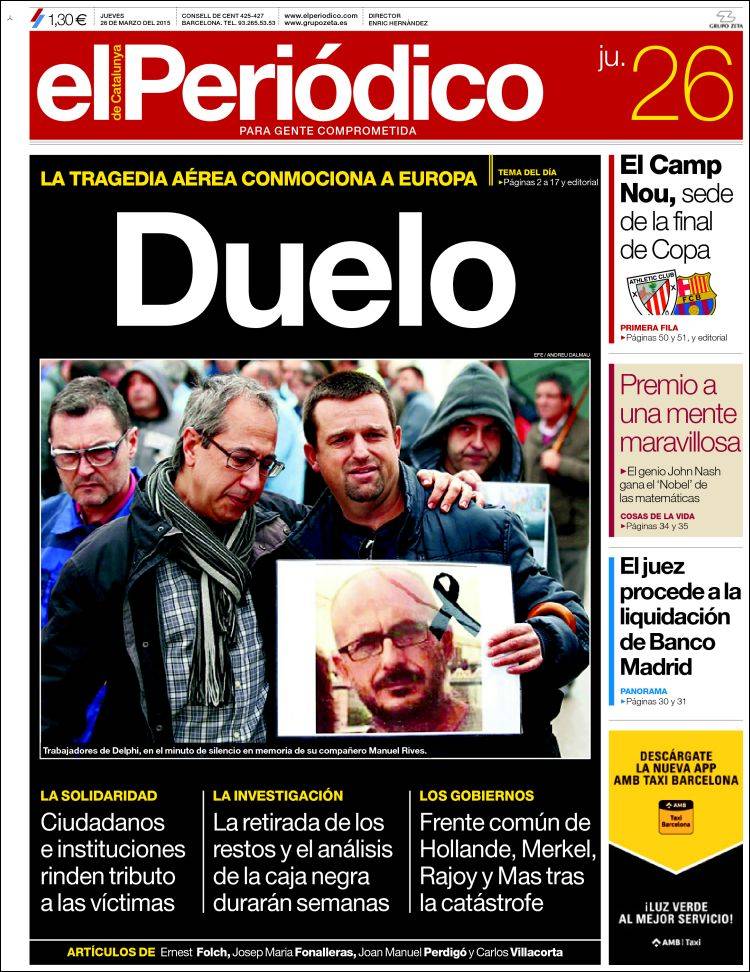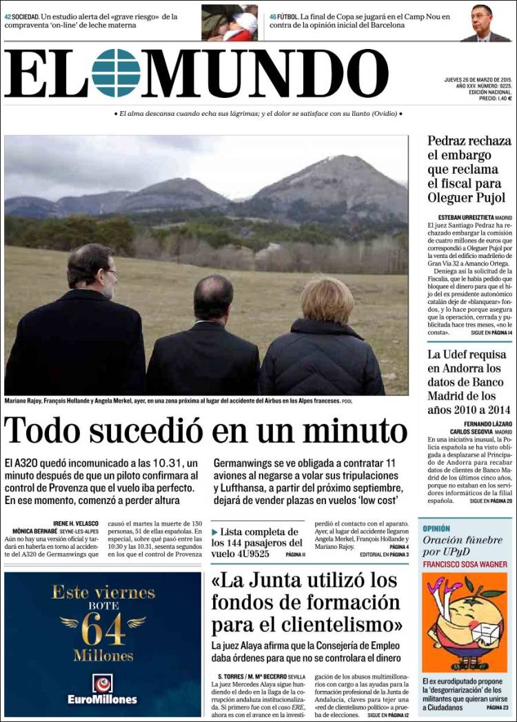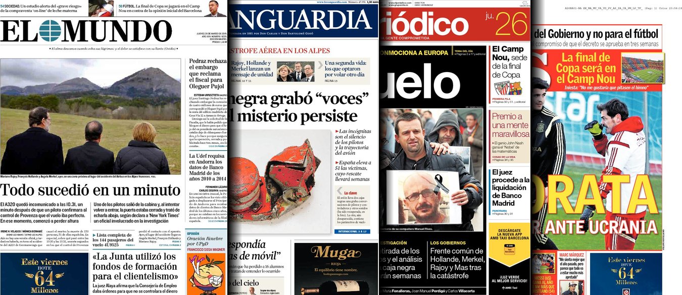 Portadas de los diarios El Mundo, El País, ABC, La Razón, La Vanguardia, El Periódico, Cinco Días, El Economista, Expansión, Marca, As, Mundo Deportivo y Sport.