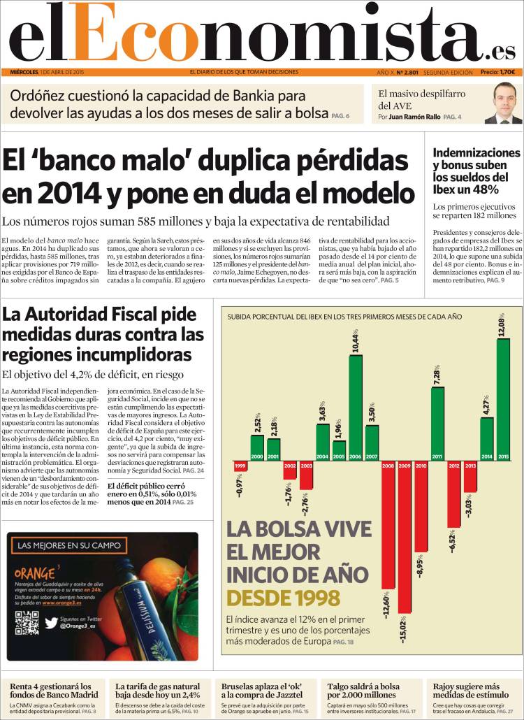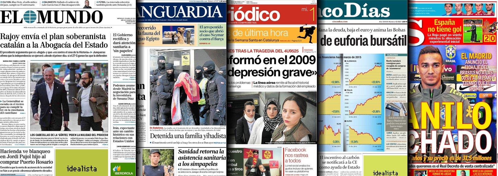 Portadas de los diarios ABC, As, Cinco Días, El Periódico y La Vanguardia.