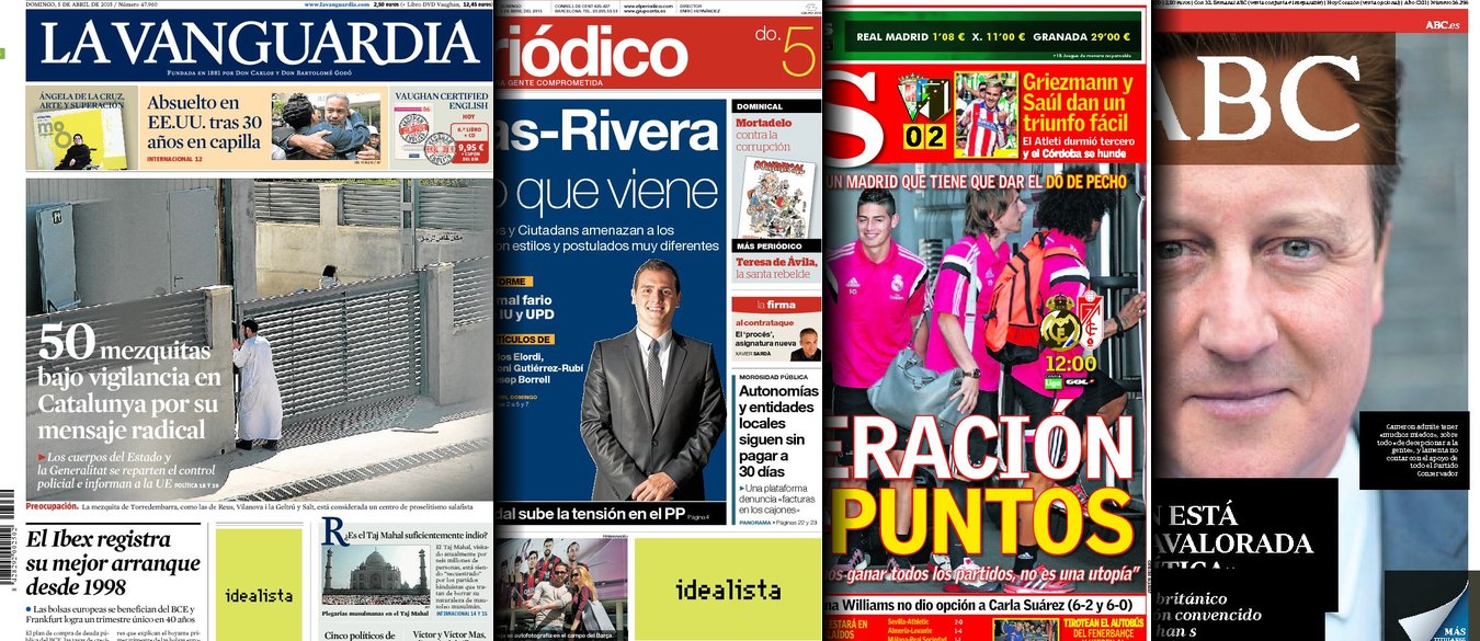 Portadas de los diarios ABC, As, El Periódico y La Vanguardia.