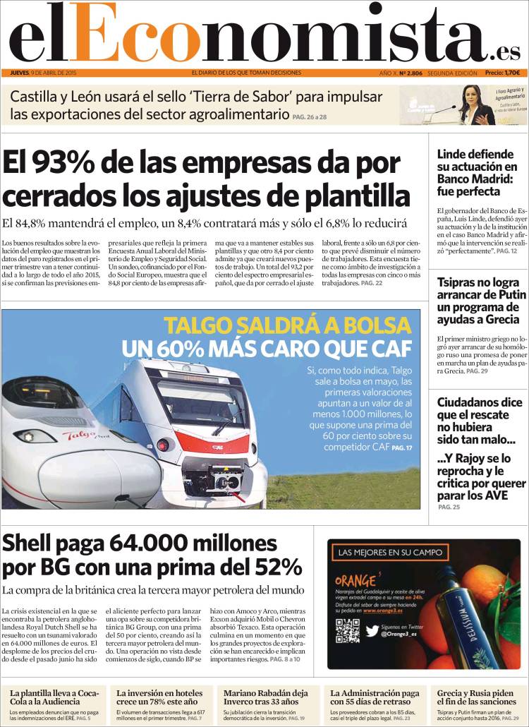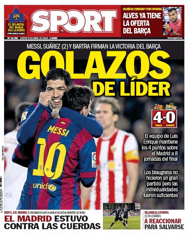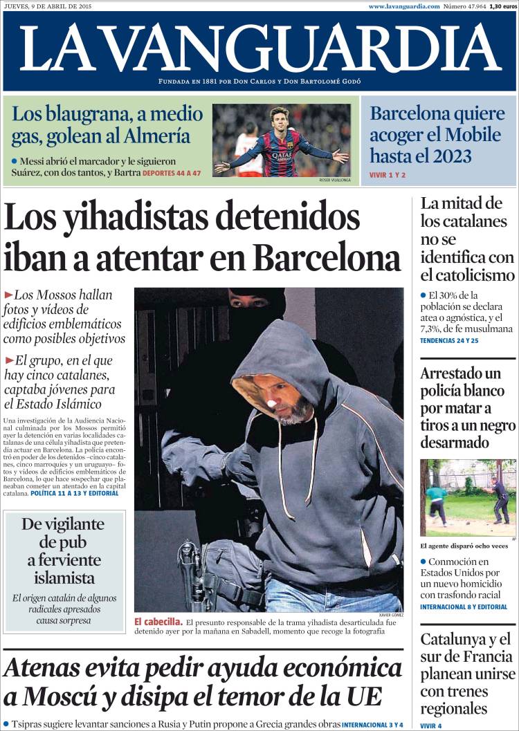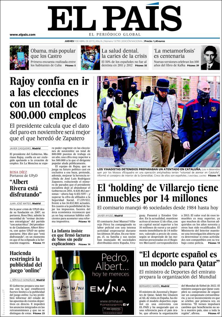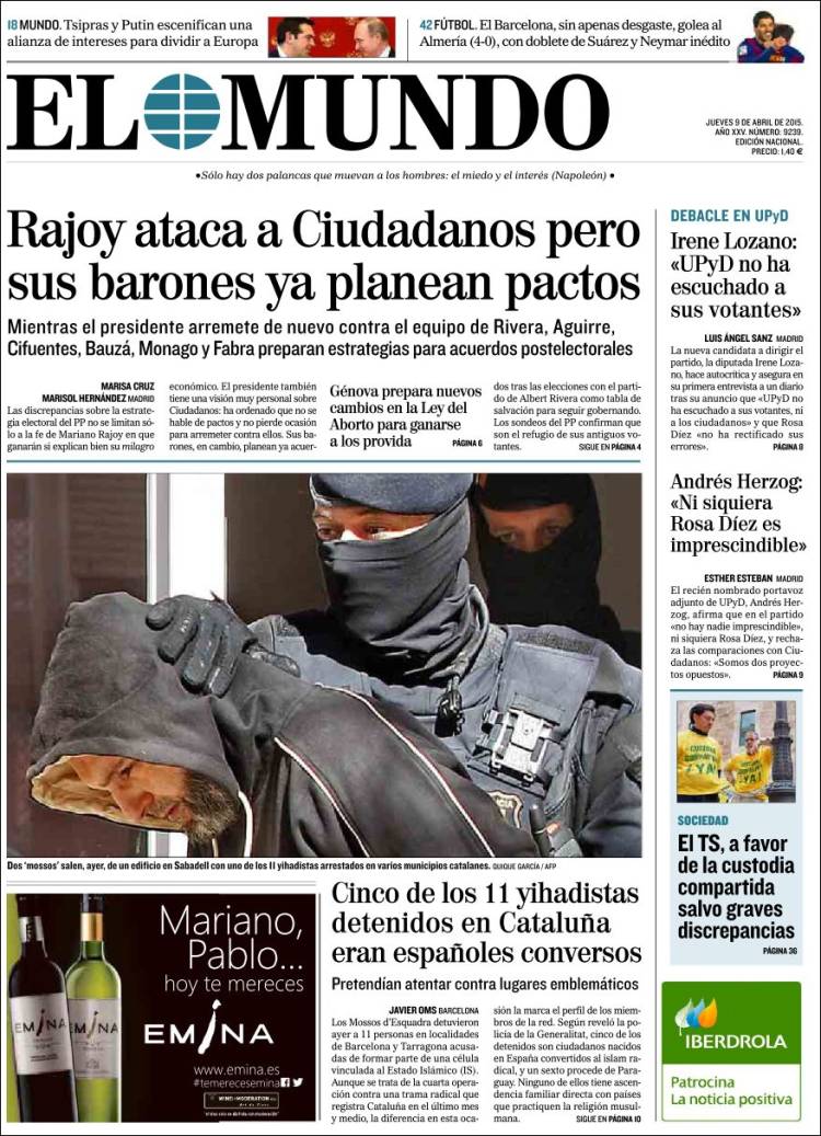 Portadas de los diarios El Mundo, El País, ABC, La Razón, La Vanguardia, El Periódico, Cinco Días, El Economista, Expansión, Marca, As, Mundo Deportivo y Sport.