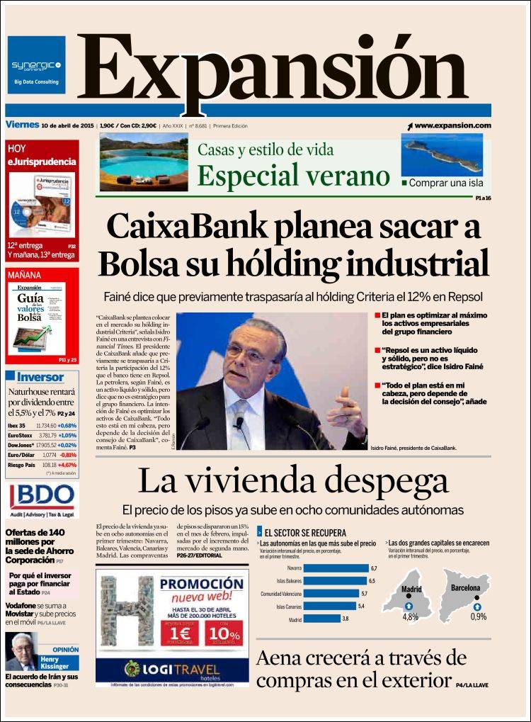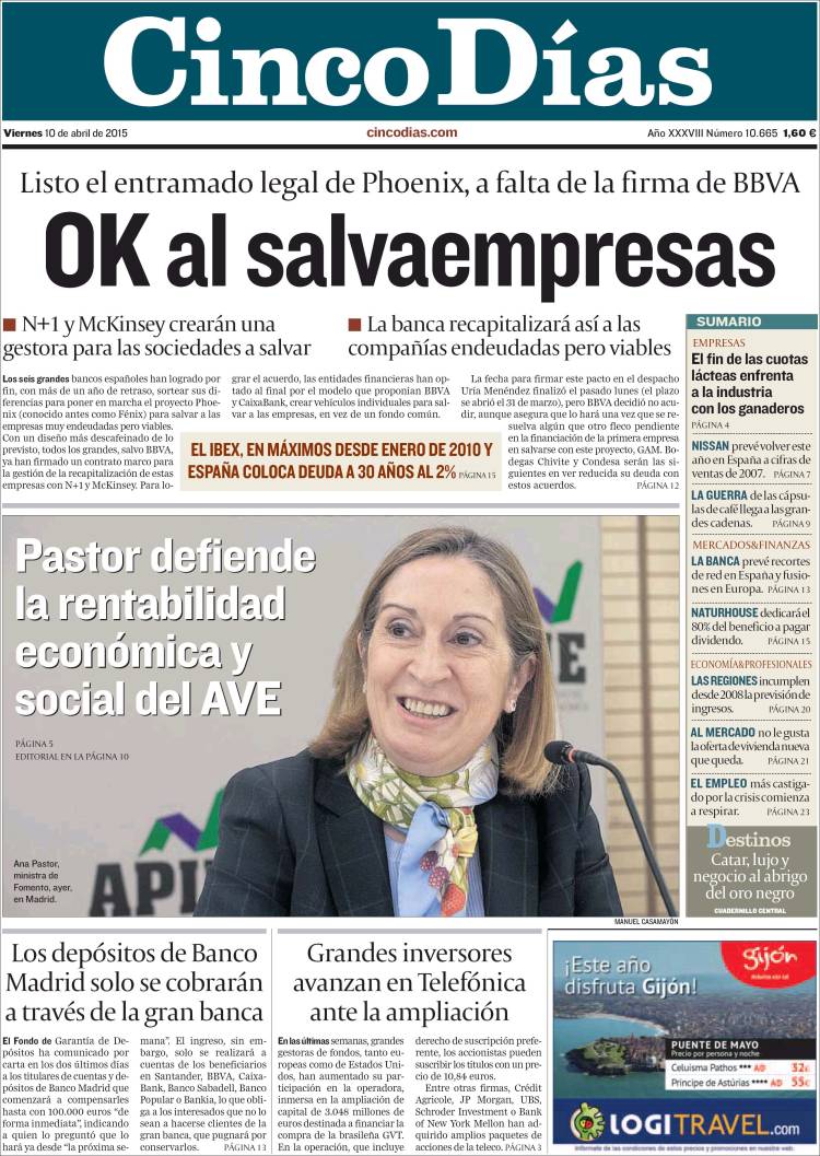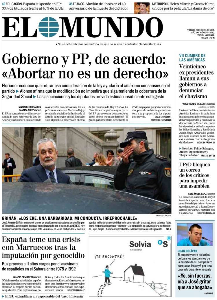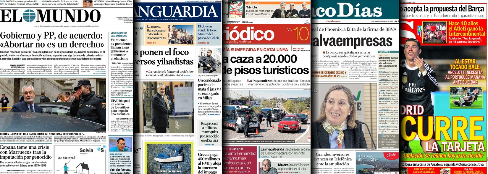 Portadas de los diarios El Mundo, El País, ABC, La Razón, La Vanguardia, El Periódico, Cinco Días, El Economista, Expansión, Marca, As, Mundo Deportivo y Sport.