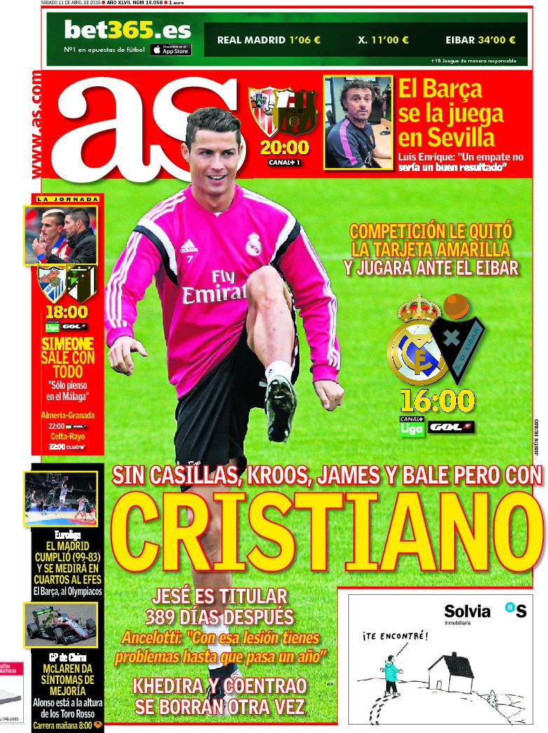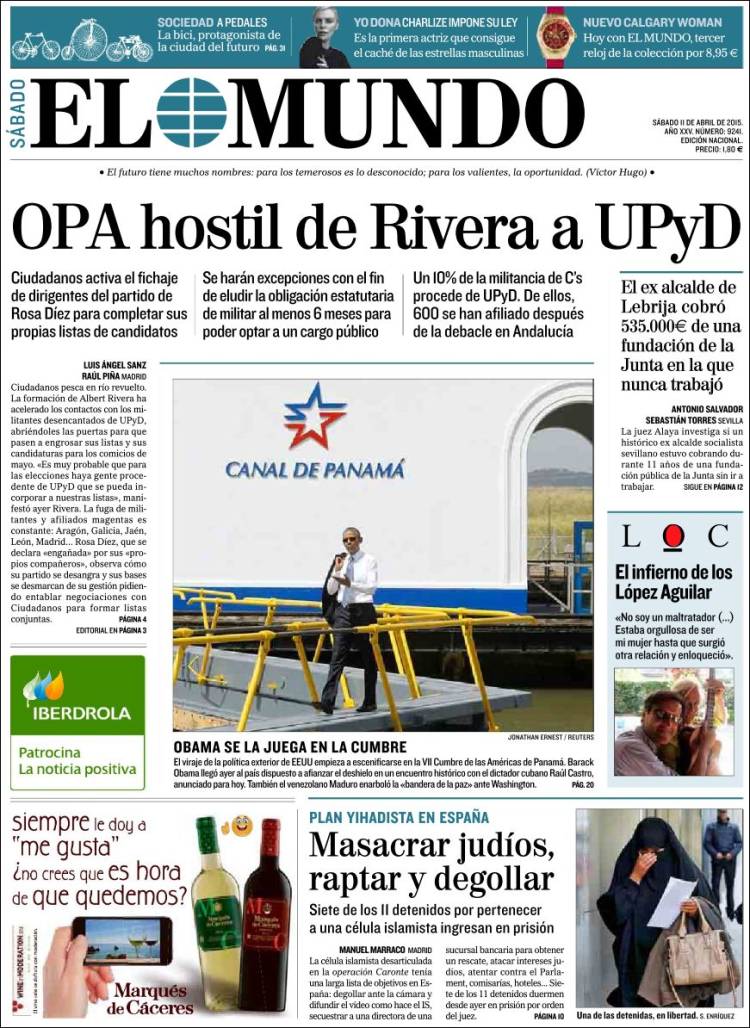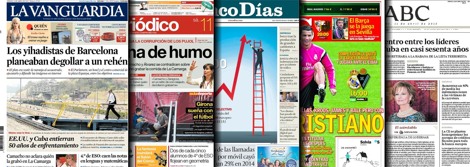 Portadas de los diarios El Mundo, El País, ABC, La Razón, La Vanguardia, El Periódico, Expansión, el Economista, Cinco Días, Marca, As, Mundo Deportivo y Sport.