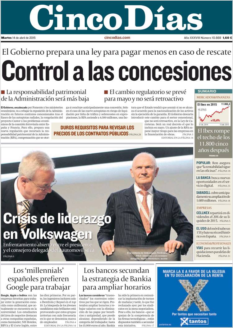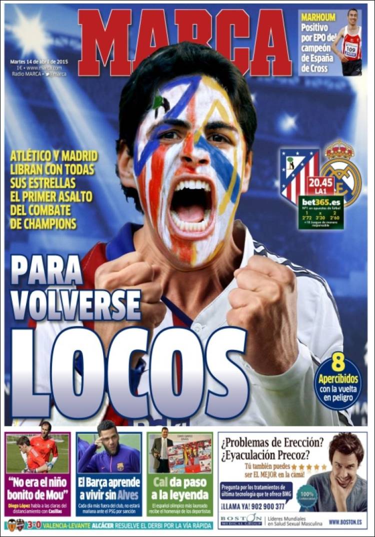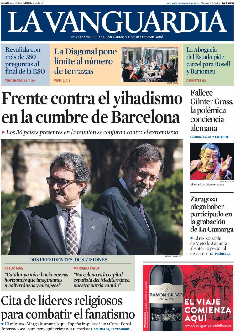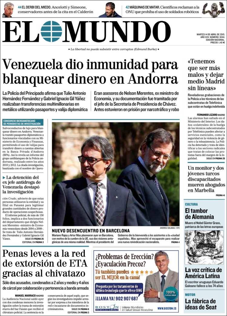 Portadas de los diarios El Mundo, El País, ABC, La Razón, La Vanguardia, El Periódico, Cinco Días, El Economista, Marca, As, Mundo Deportivo y Sport.