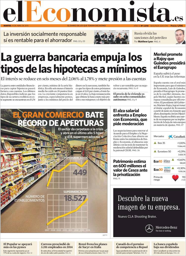"La guerra bancaria empuja los tipos de las hipotecas a mínimos"