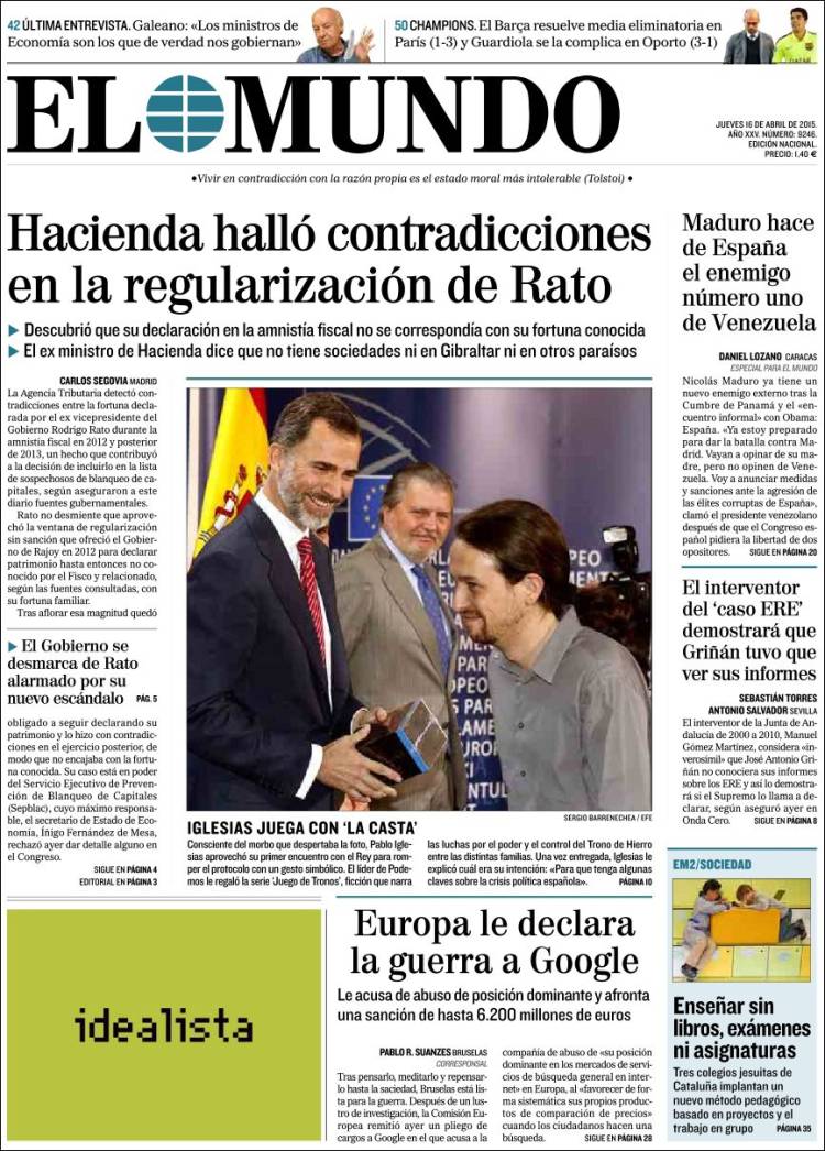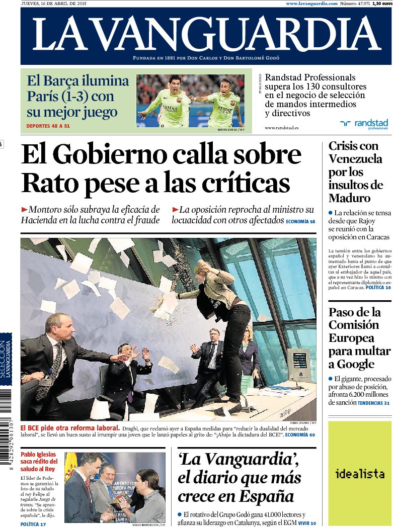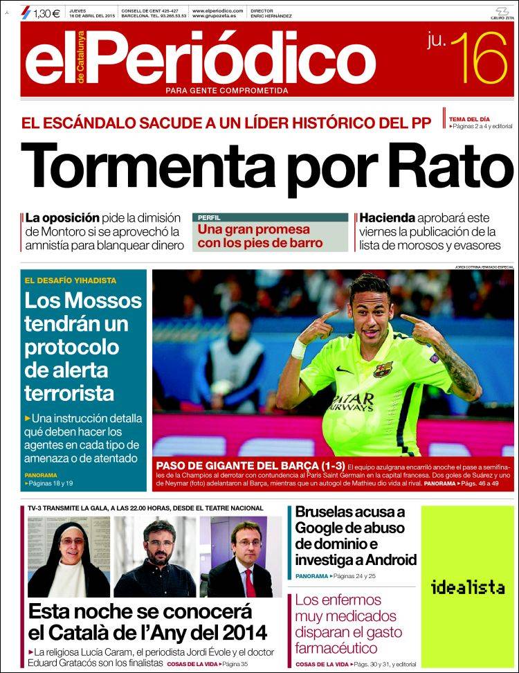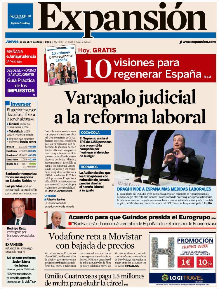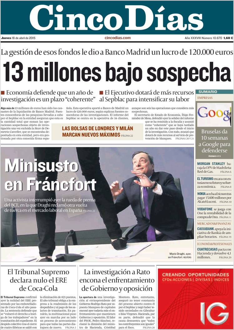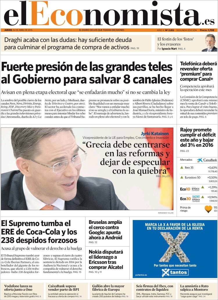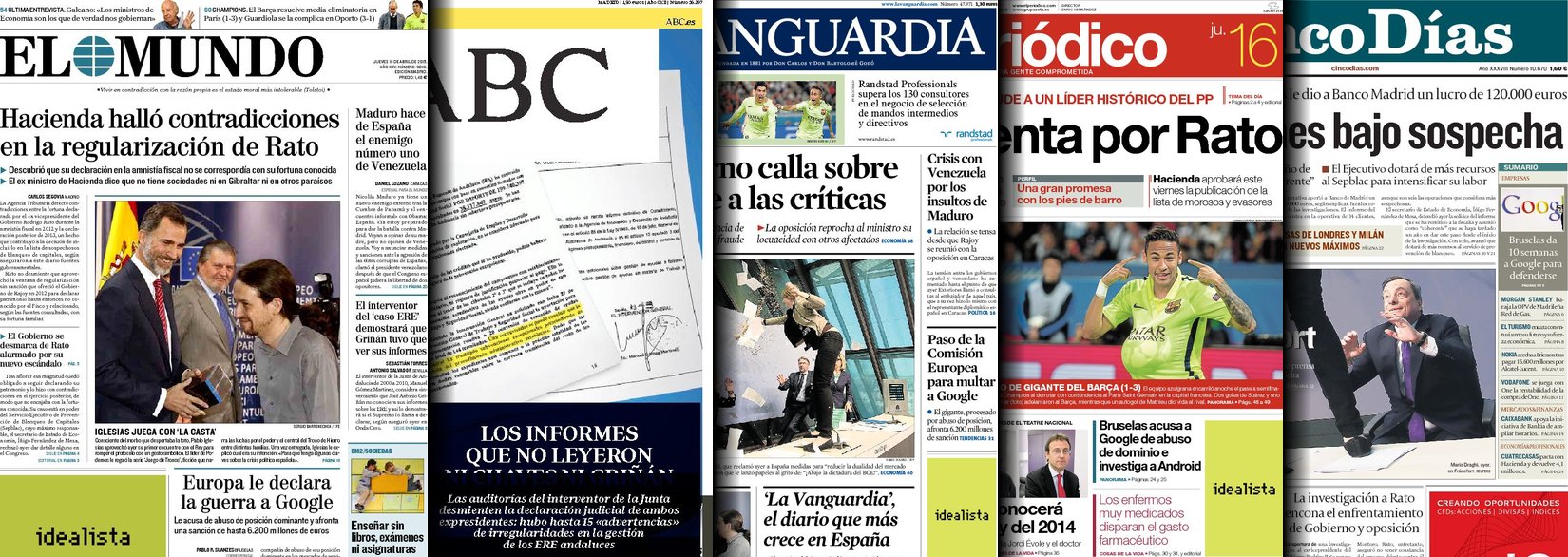 Portadas de los diarios El Mundo, El País, ABC, La Razón, La Vanguardia, El Periódico, Cinco Días, El Economista, Expansión, Marca, As, Mundo Deportivo y Sport.