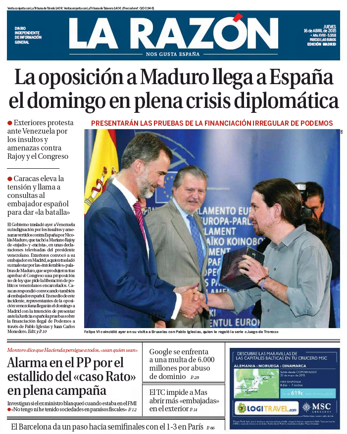 "La oposición a Maduro llega a España el domingo en plena crisis diplomática"