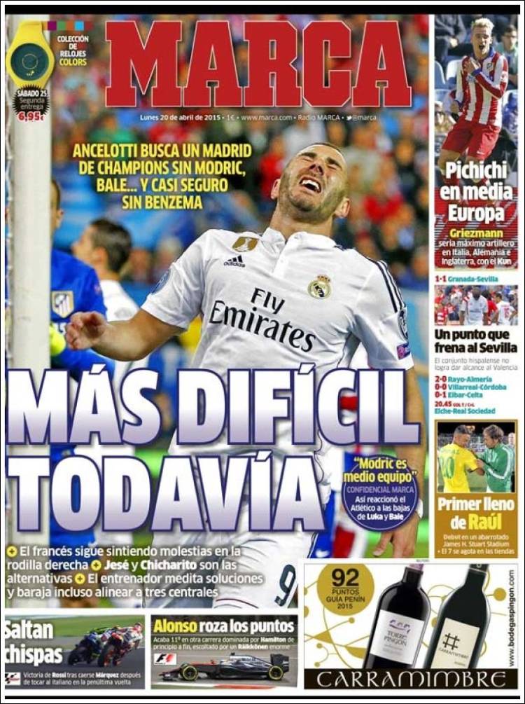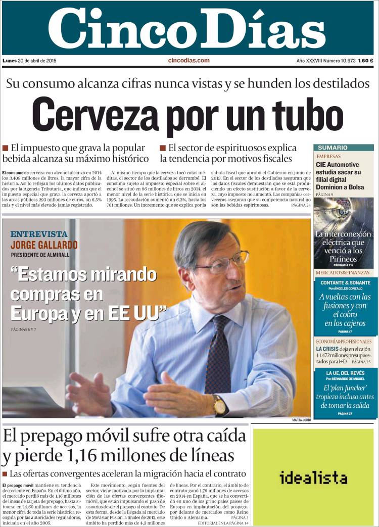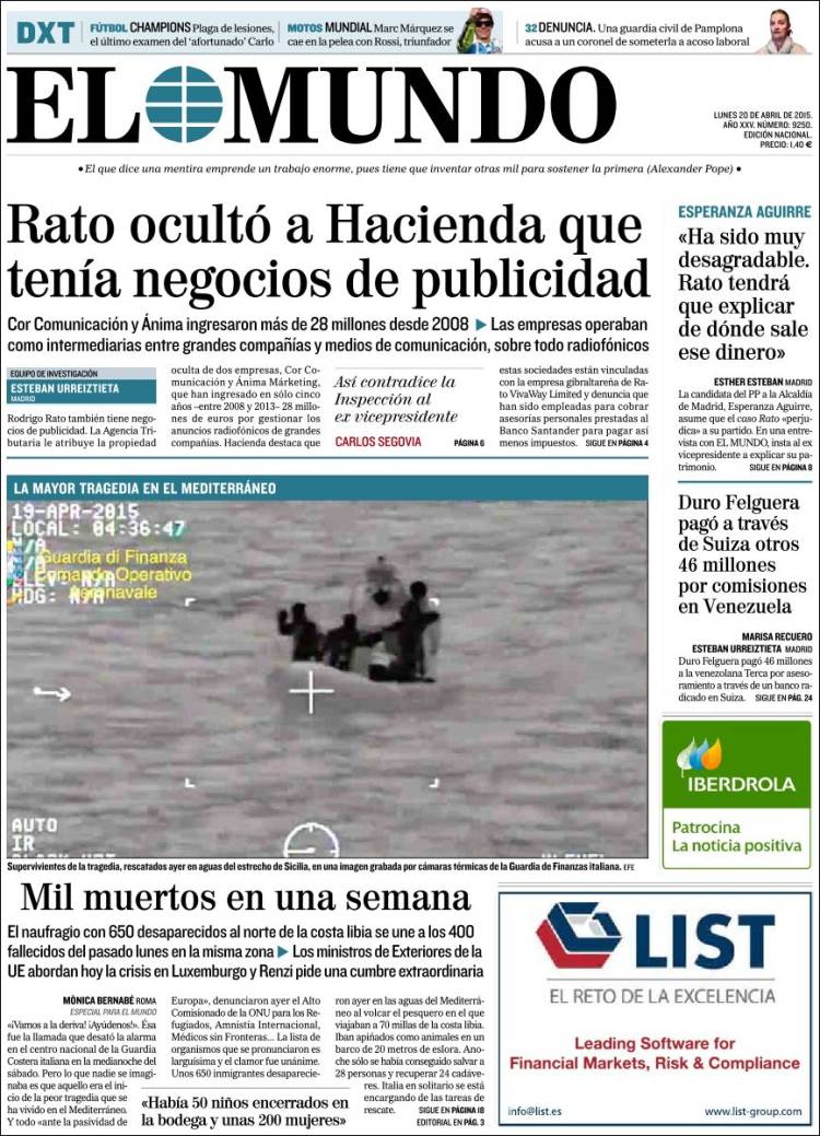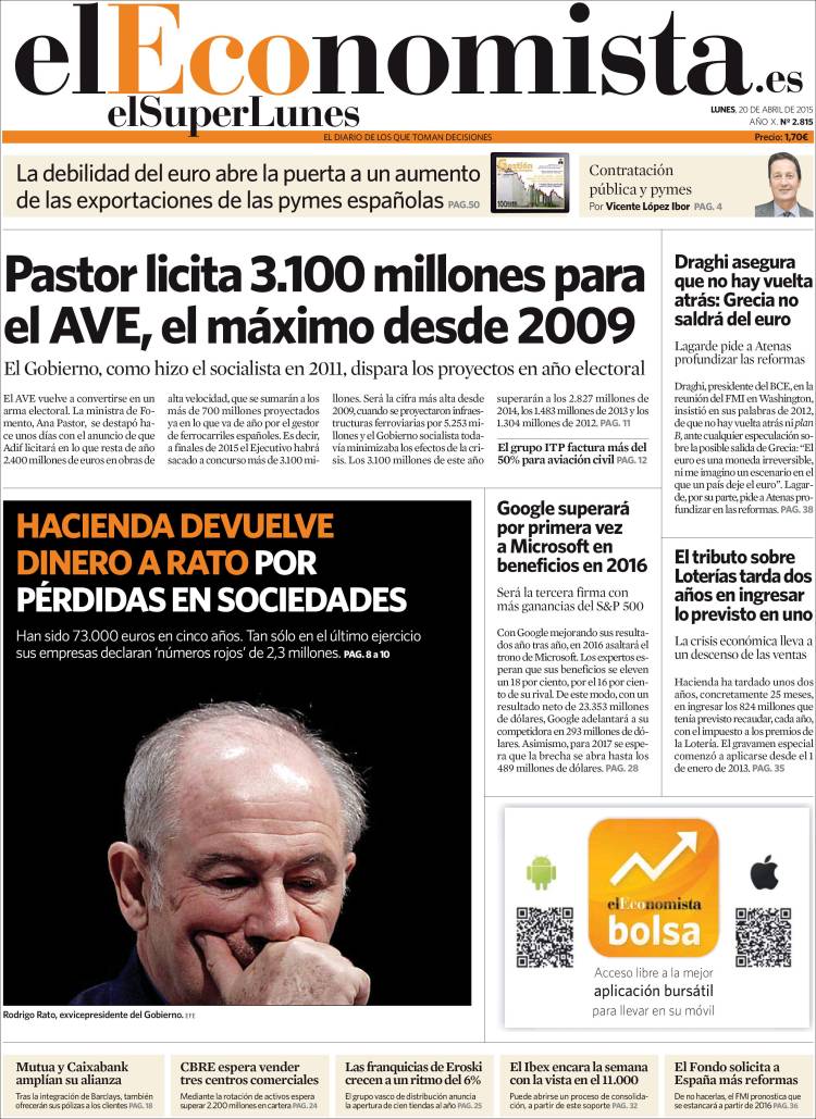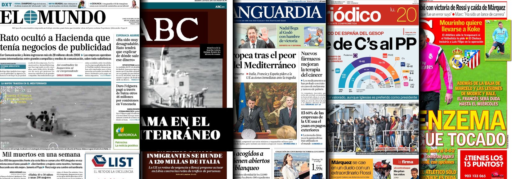 Portadas de los diarios El Mundo, El País, ABC, La Razón, La Vanguardia, El Periódico, Cinco Días, El Economista, Expansión, Marca, As, Mundo Deportivo y Sport.